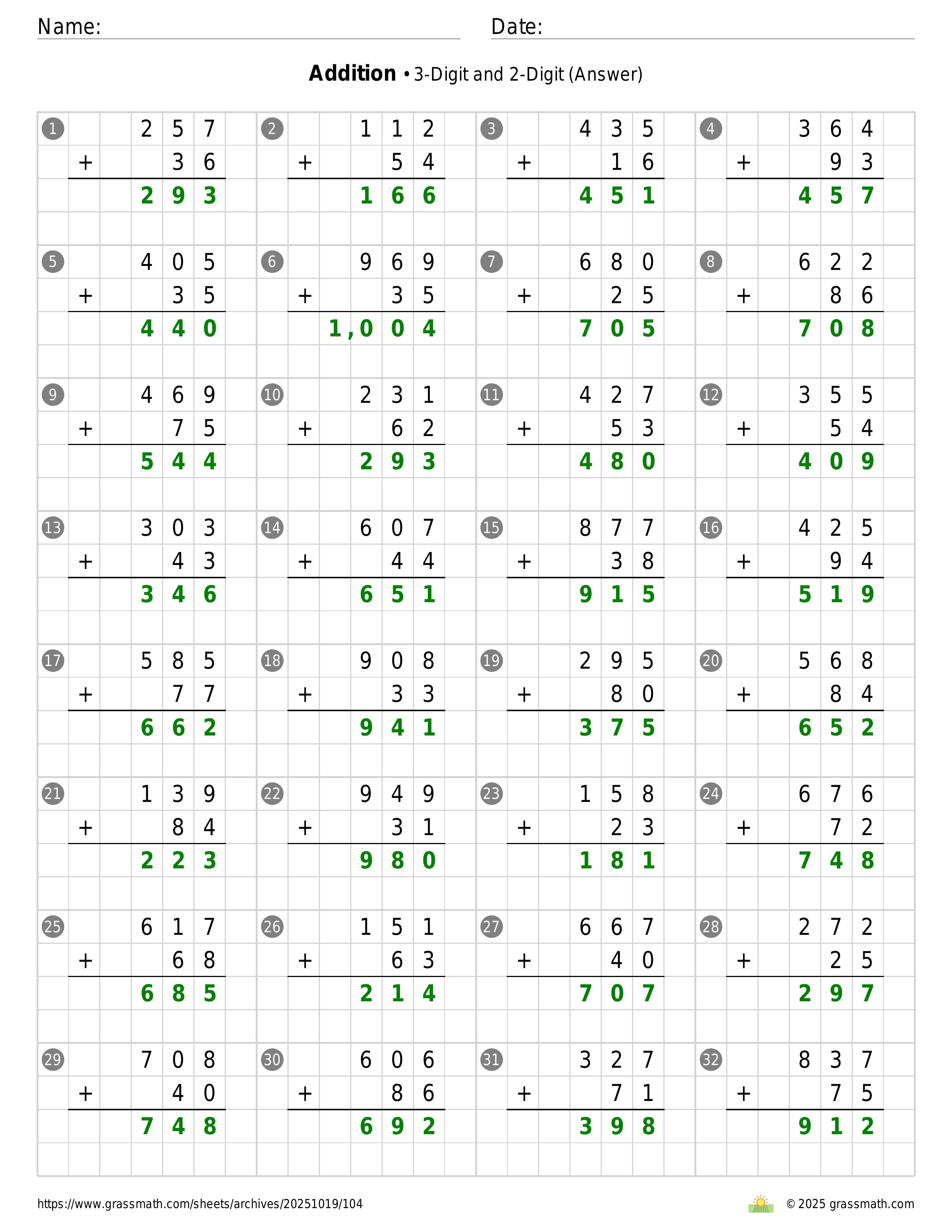 Addition 3-Digit and 2-Digit