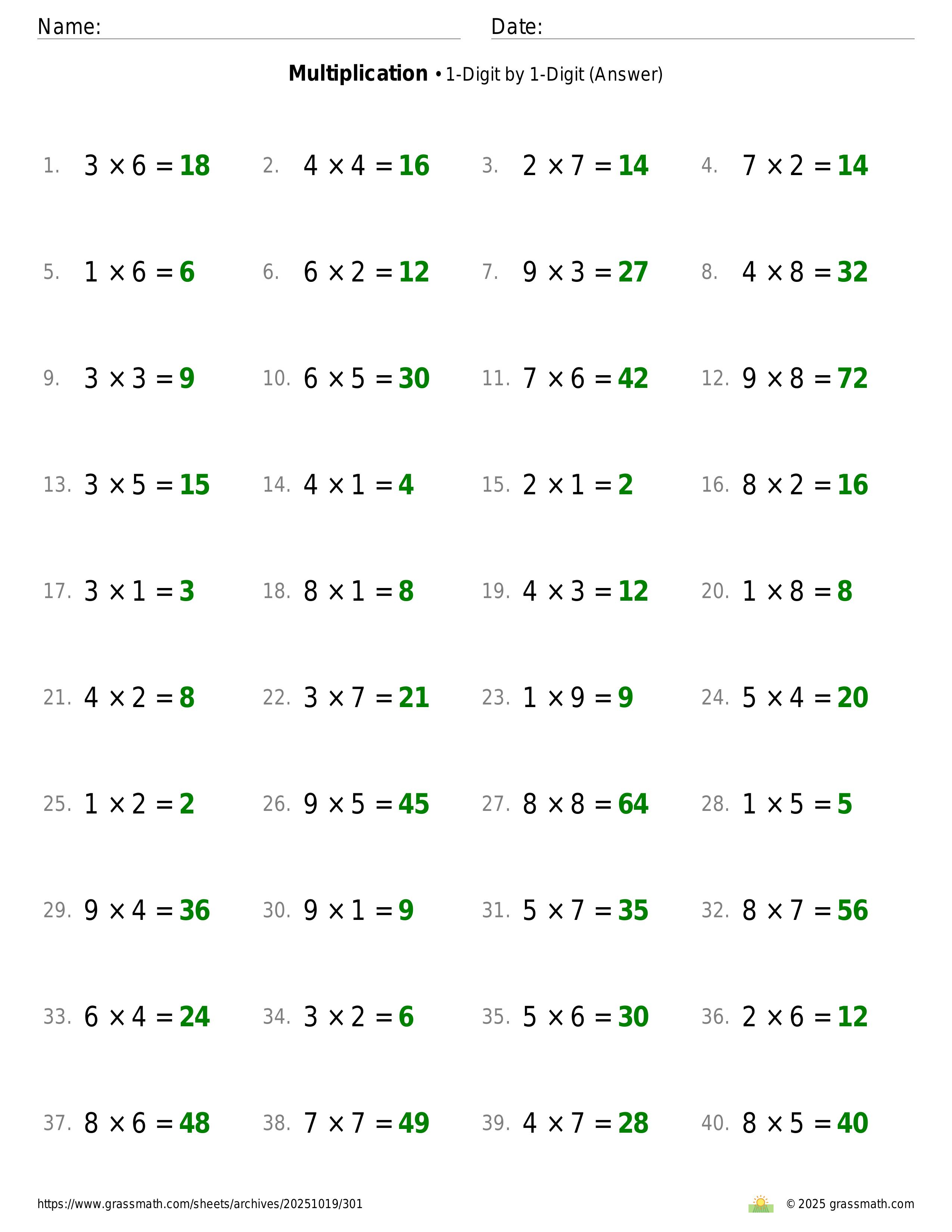 Multiplication 1-Digit by 1-Digit