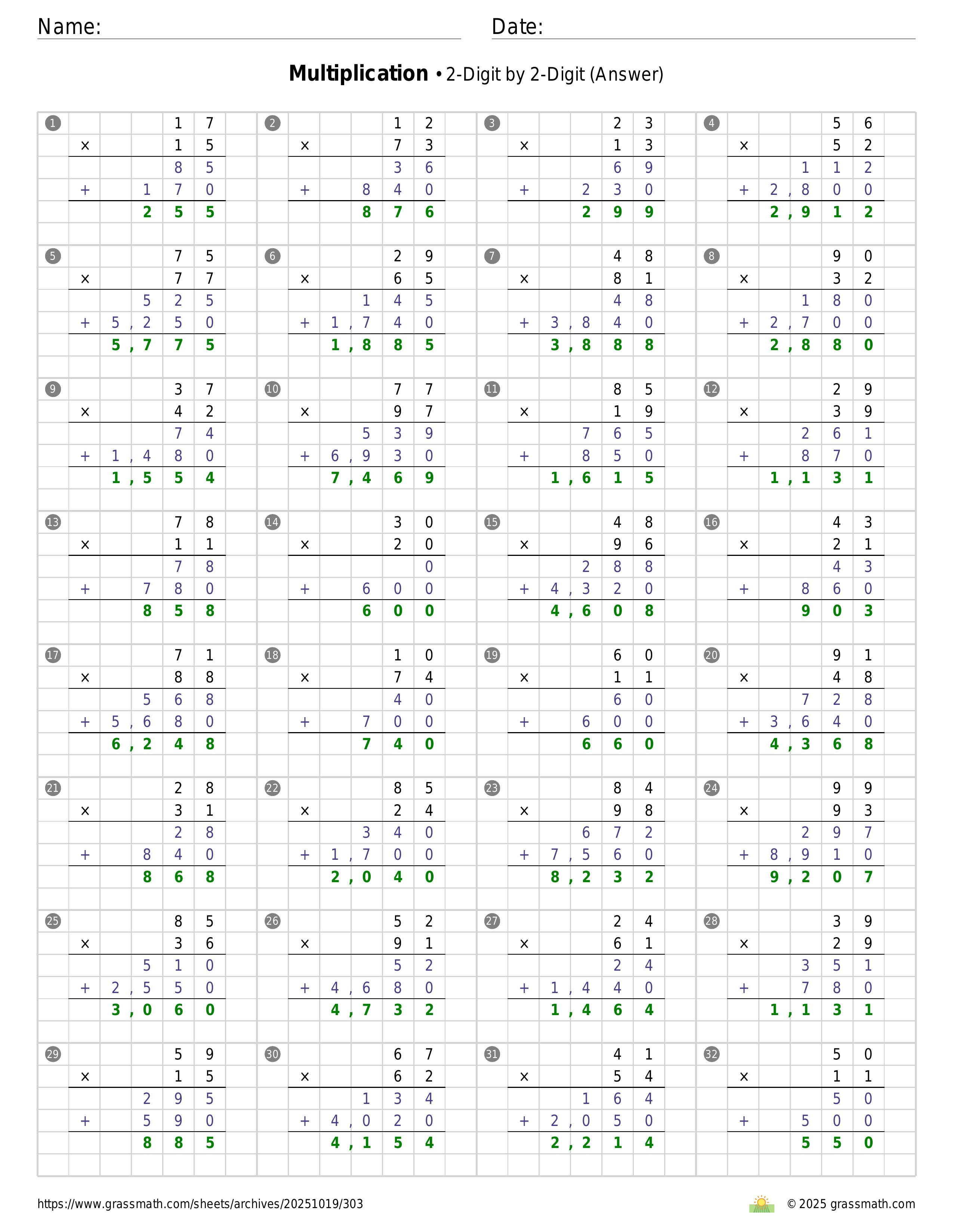 Multiplication 2-Digit by 2-Digit