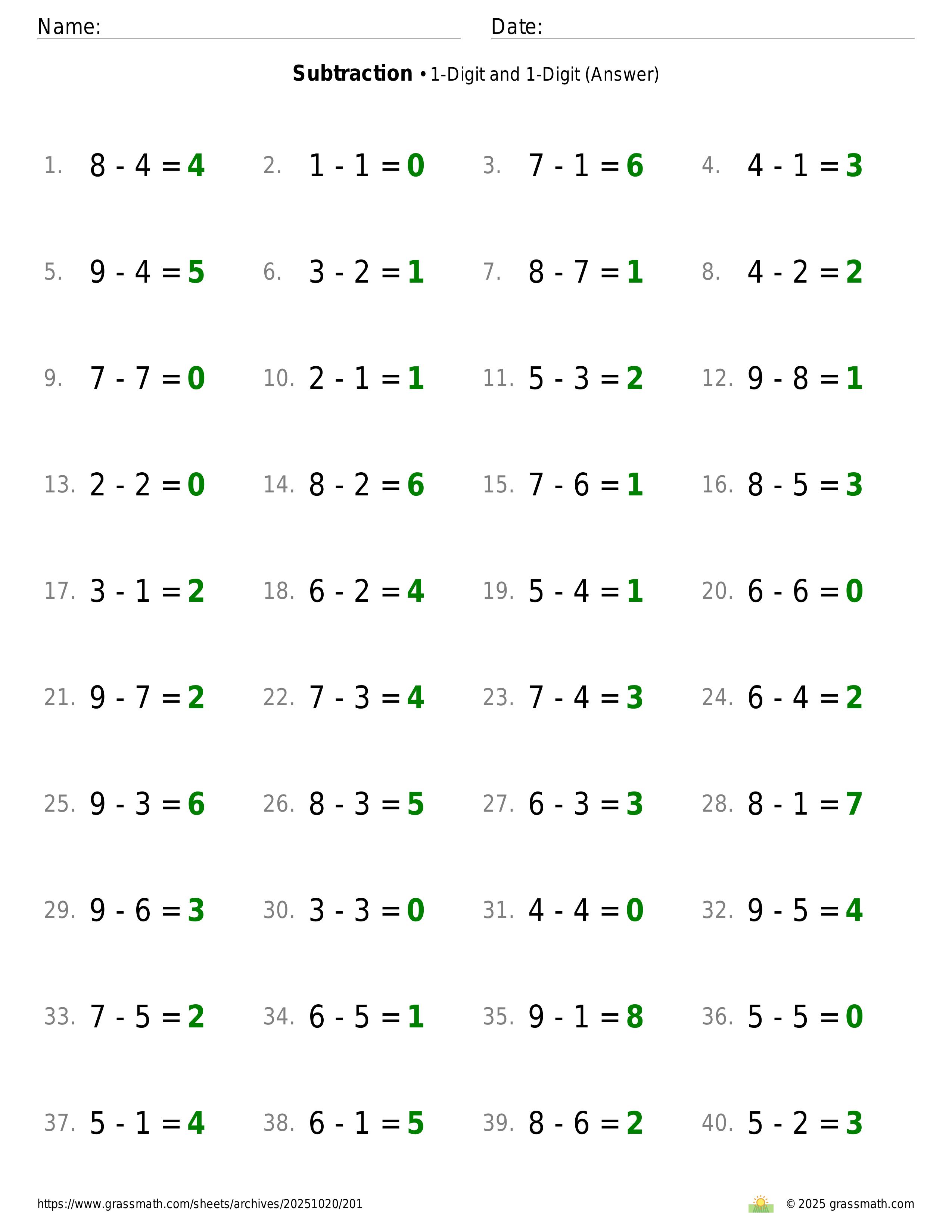 Subtraction 1-Digit and 1-Digit
