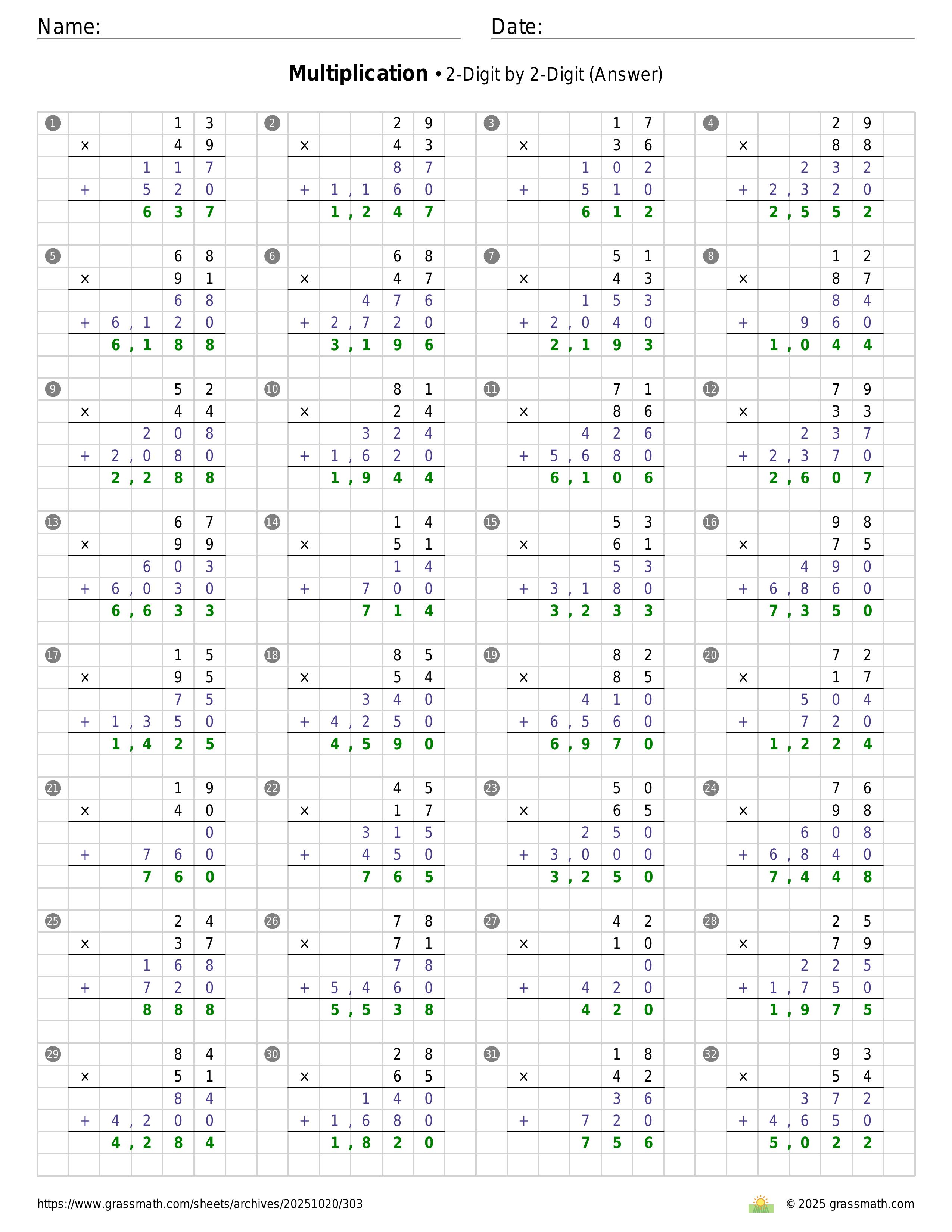 Multiplication 2-Digit by 2-Digit