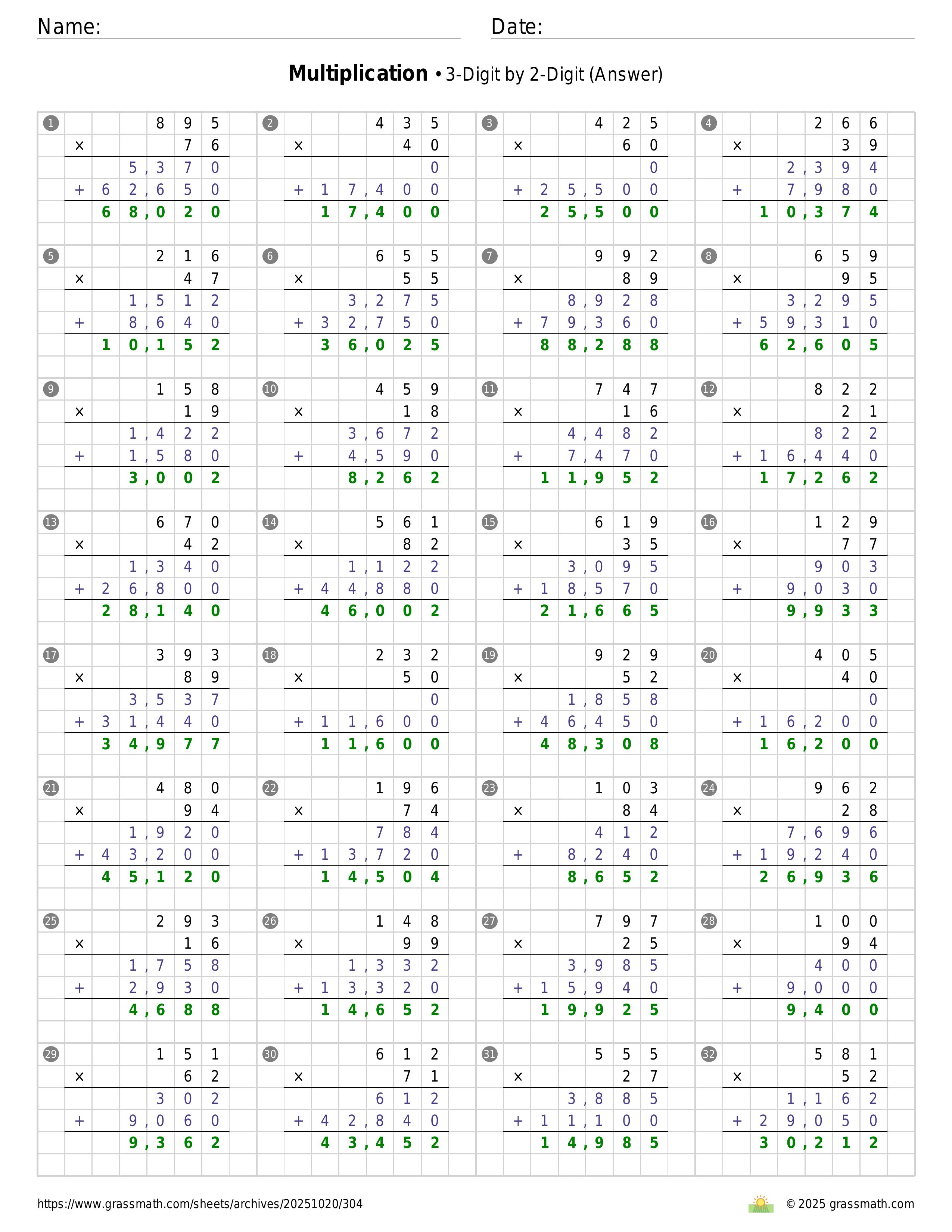 Multiplication 3-Digit by 2-Digit