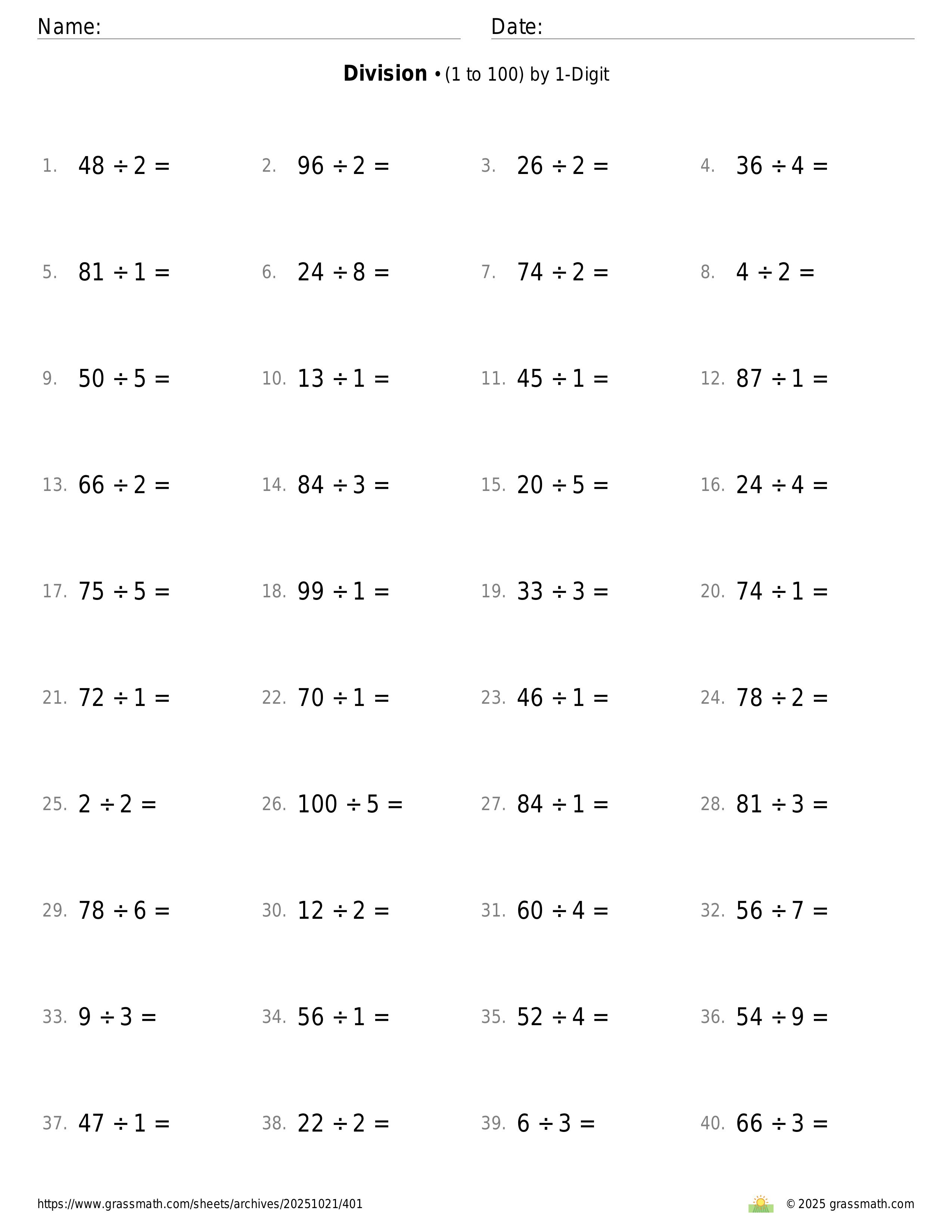 3-Digit by 1-Digit