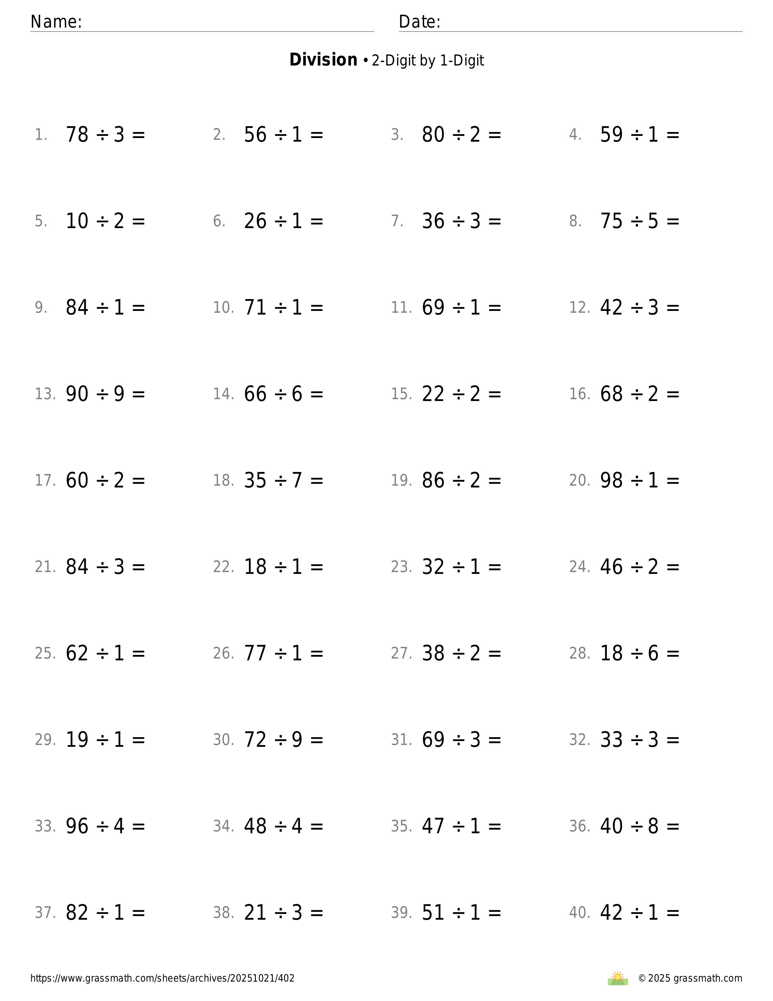 2-Digit by 1-Digit