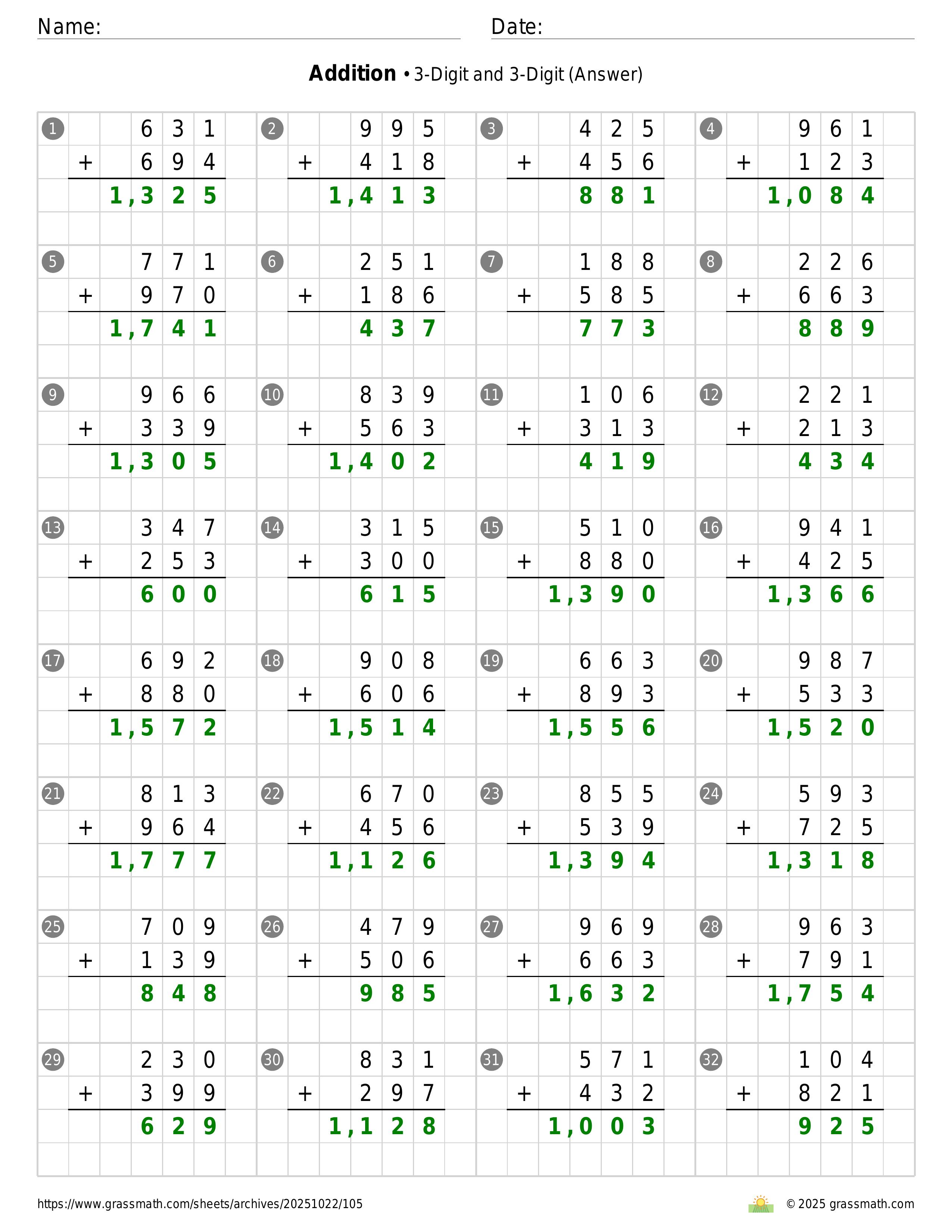 Addition 3-Digit and 3-Digit
