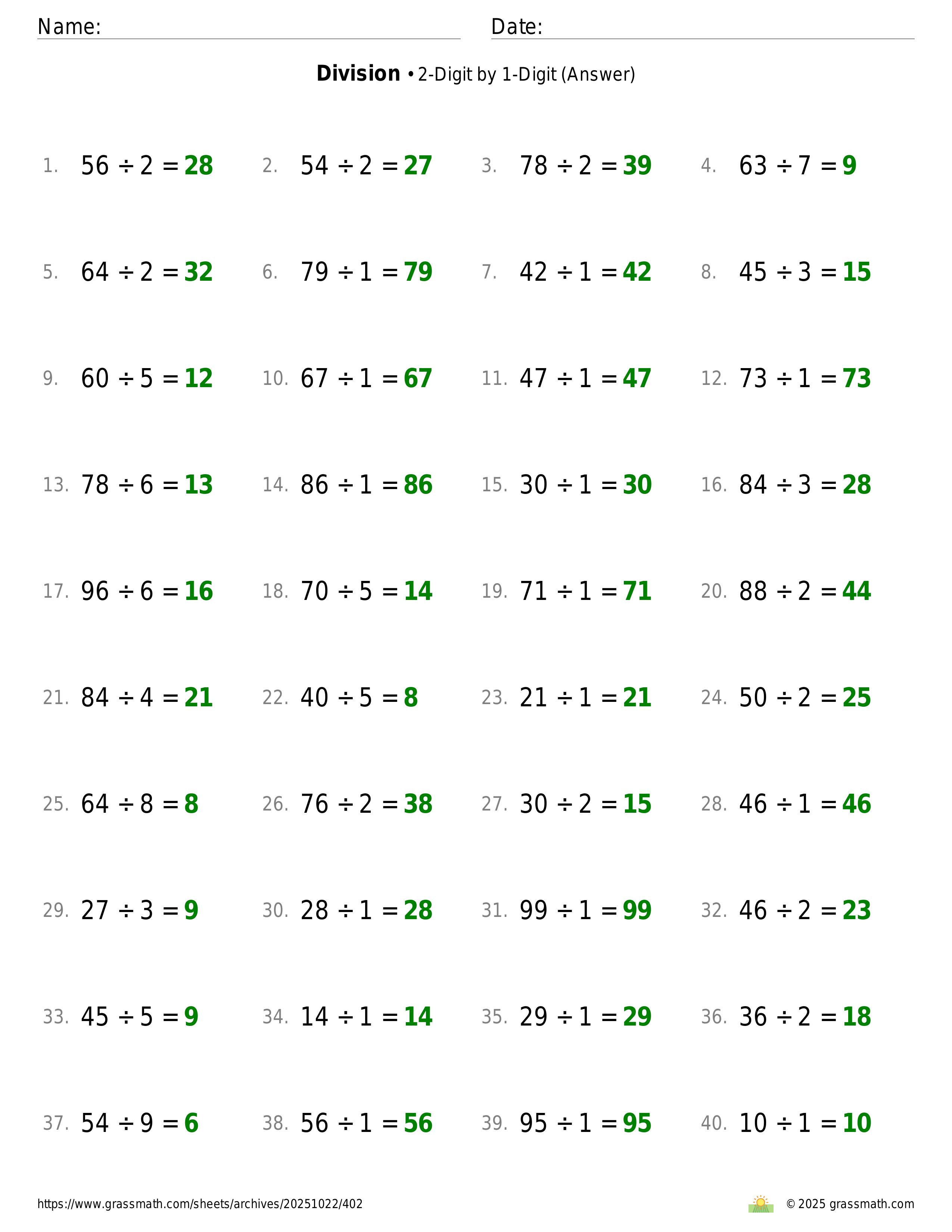 Division 2-Digit by 1-Digit