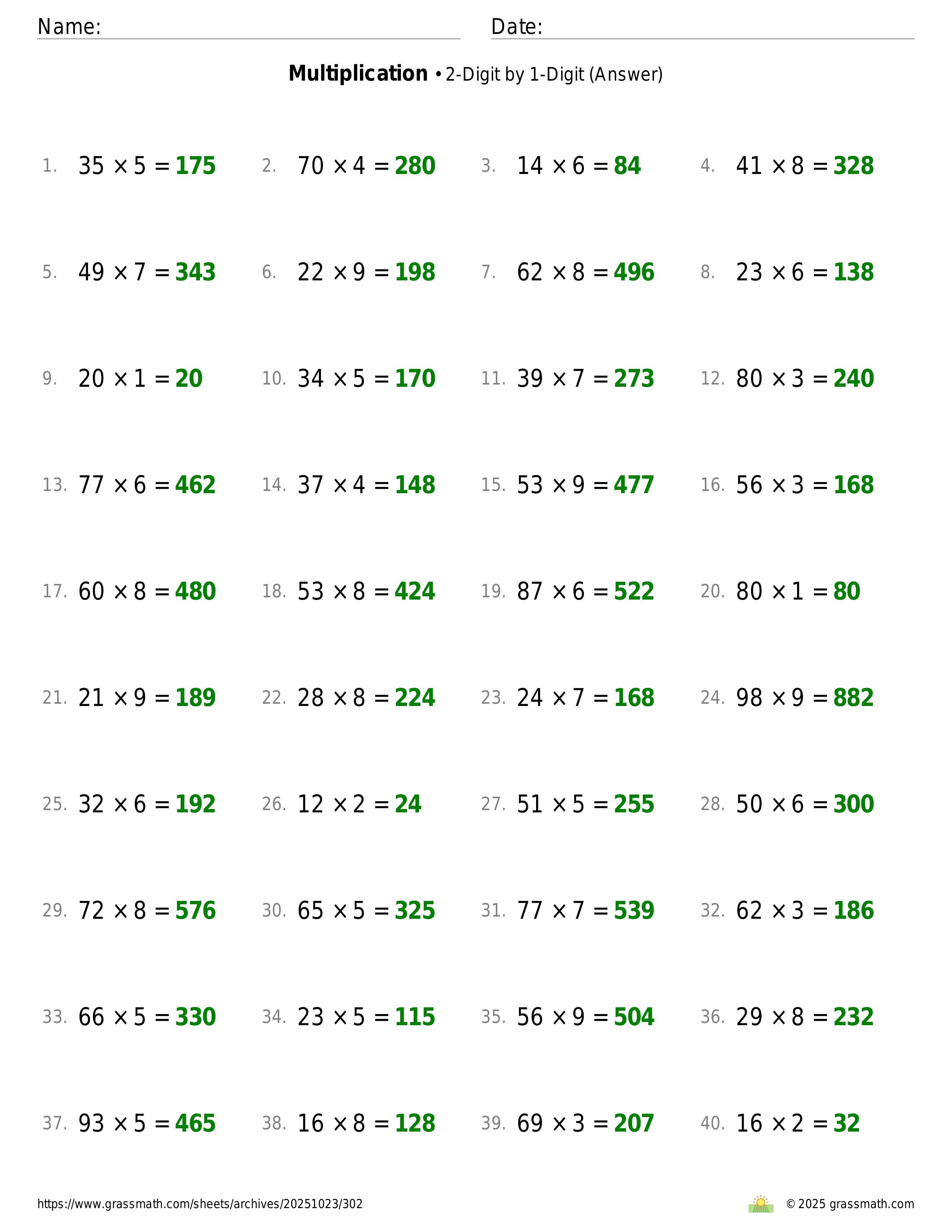 Multiplication 2-Digit by 1-Digit