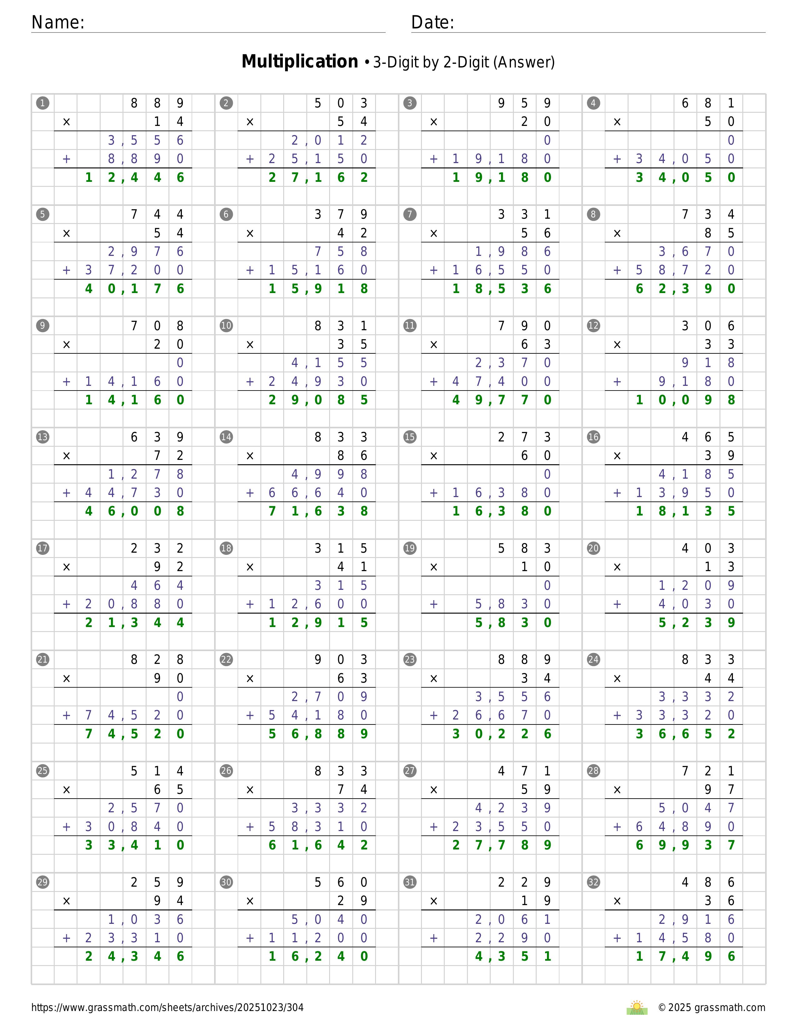 Multiplication 3-Digit by 2-Digit
