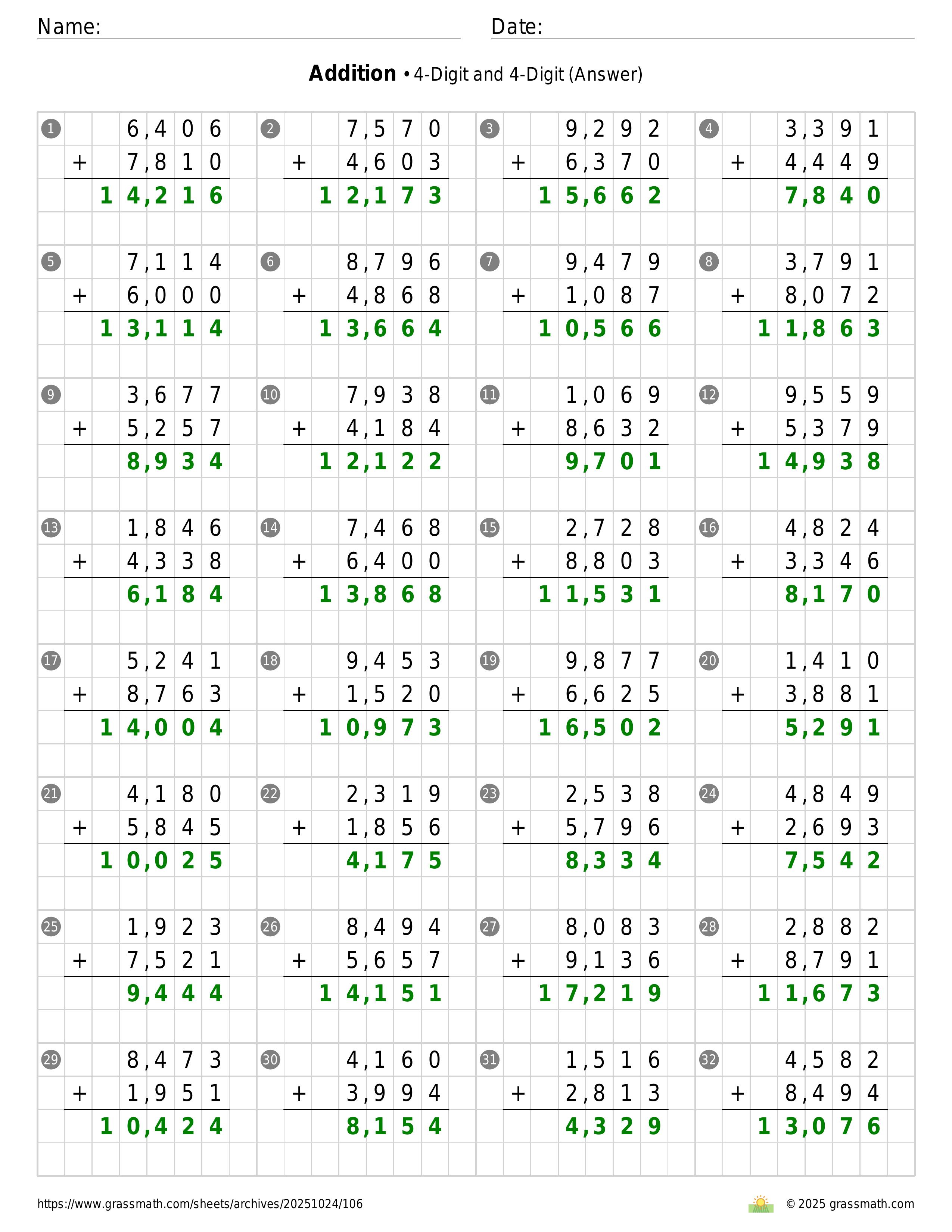 Addition 4-Digit and 4-Digit