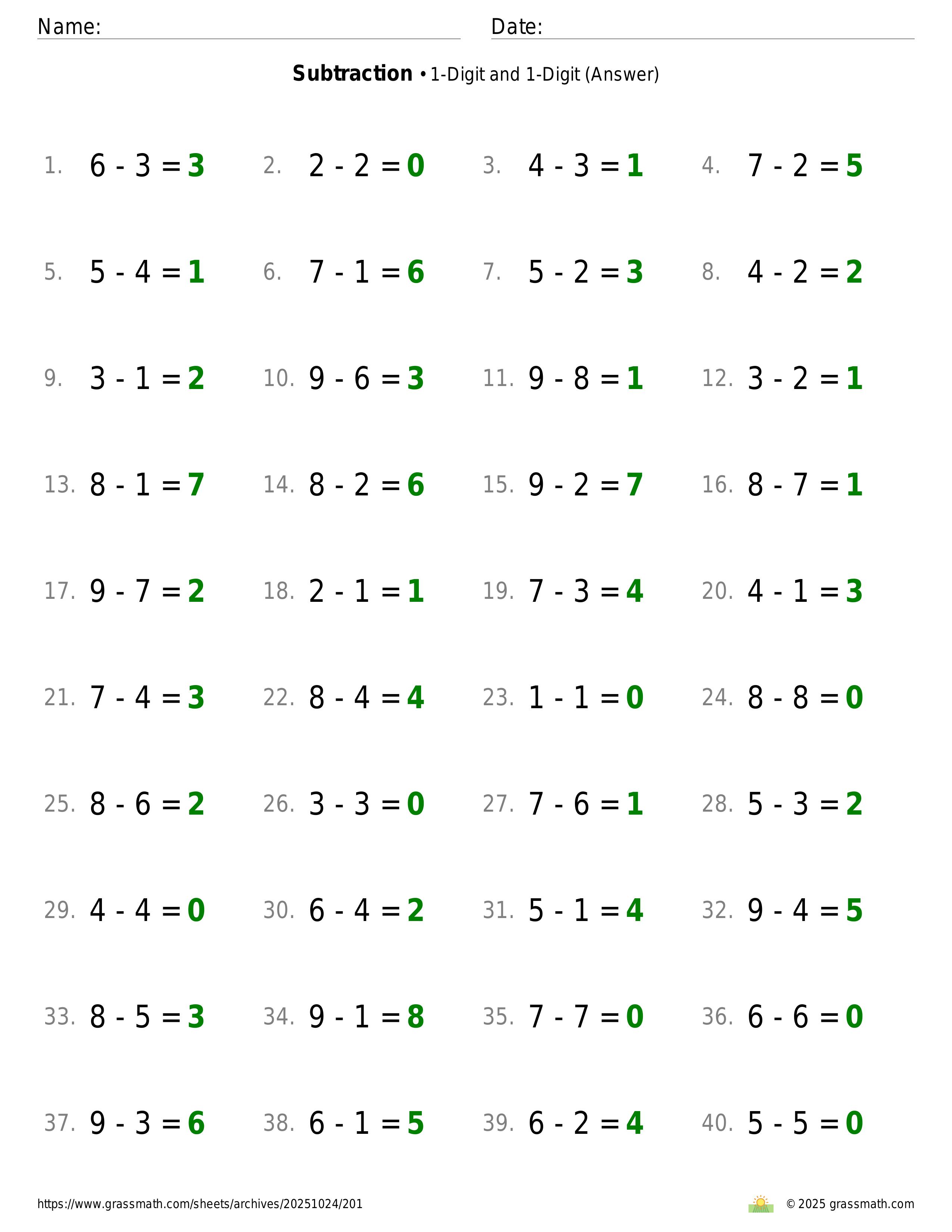 Subtraction 1-Digit and 1-Digit
