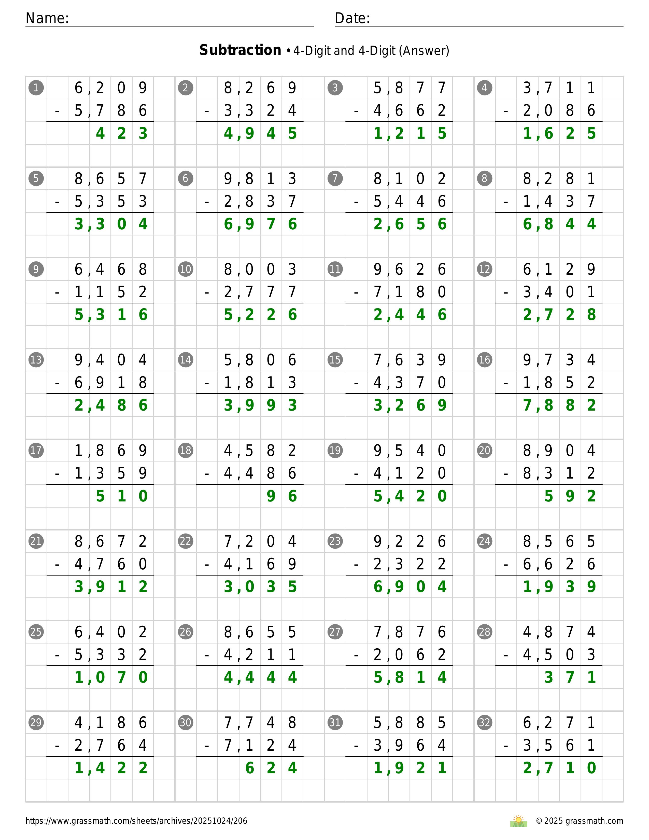 Subtraction 4-Digit and 4-Digit