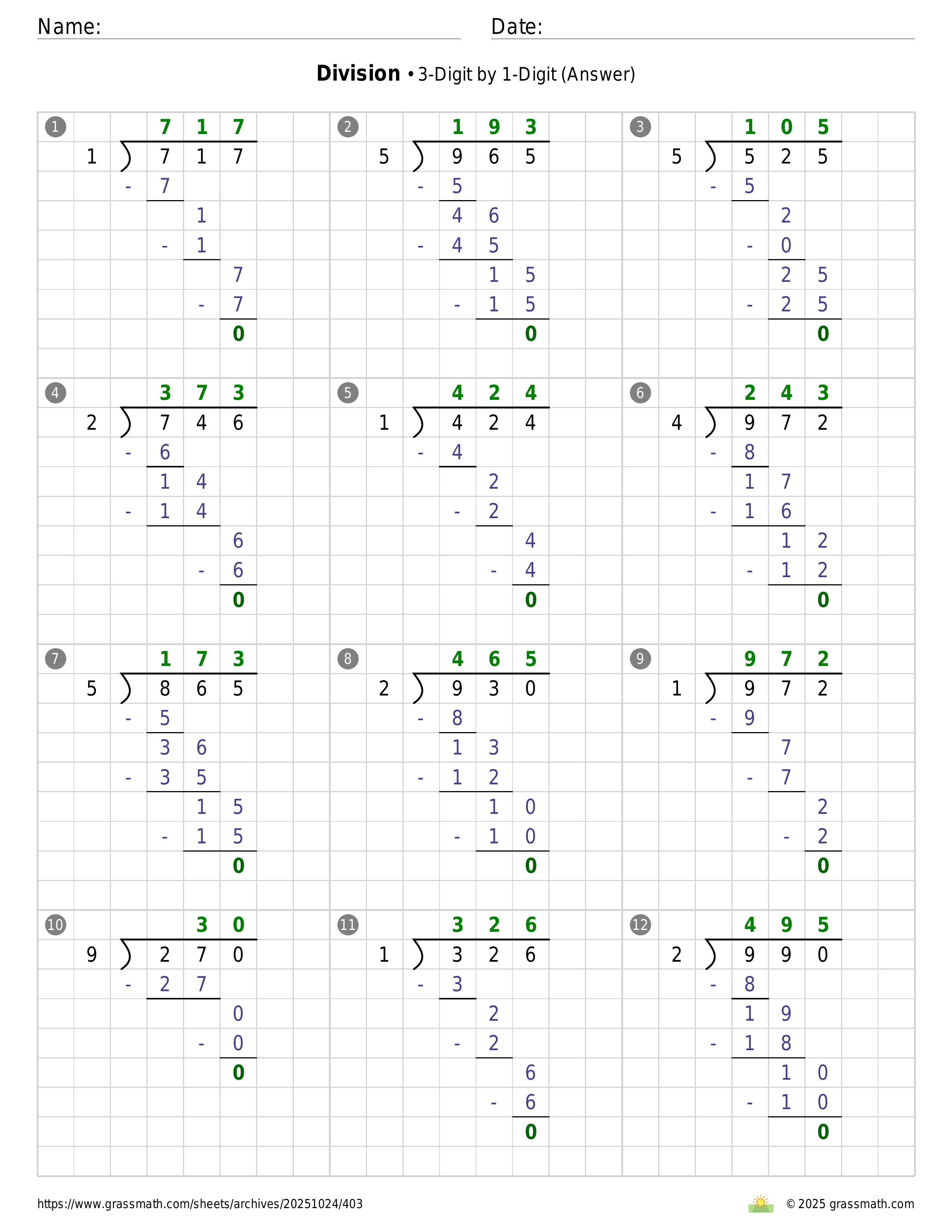 Division 3-Digit by 1-Digit