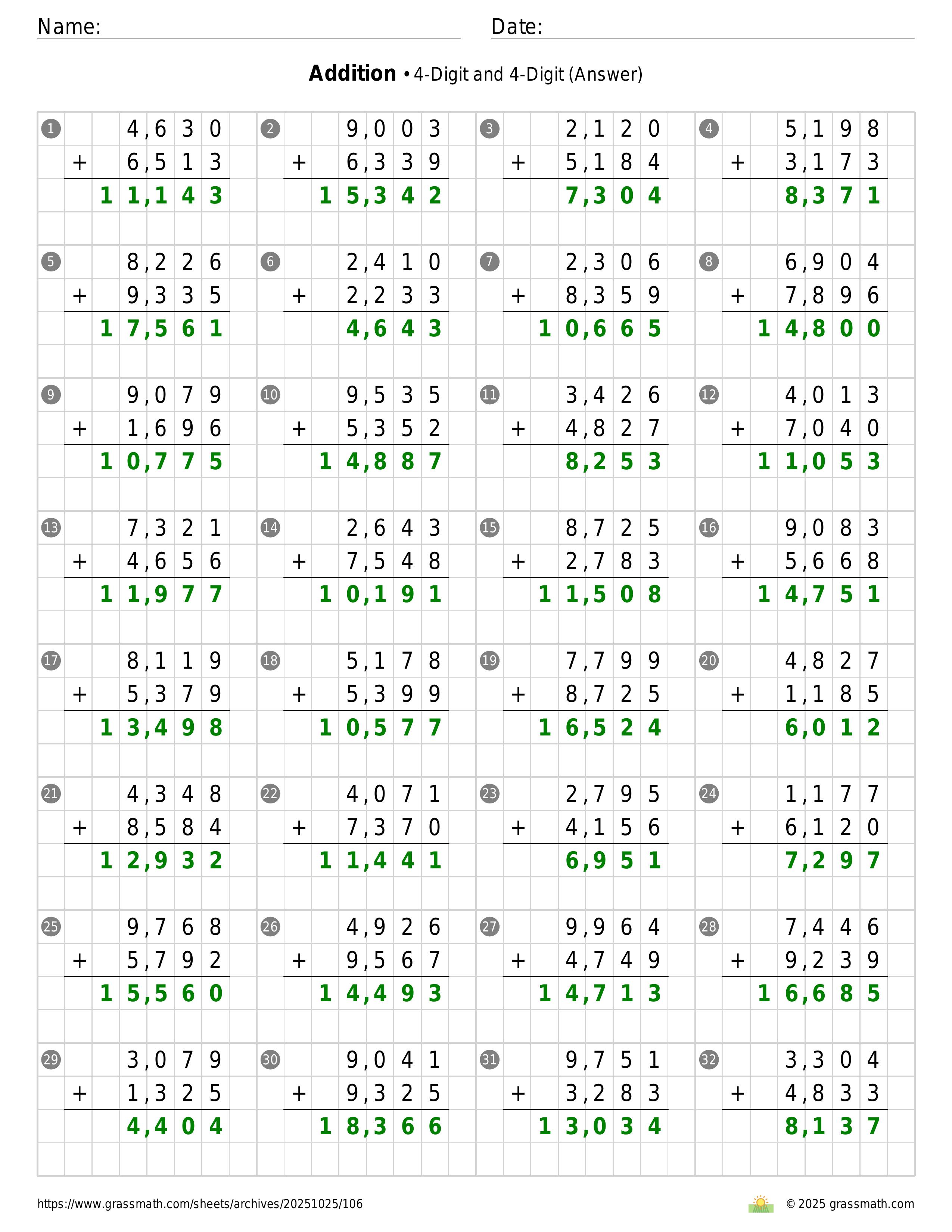 Addition 4-Digit and 4-Digit