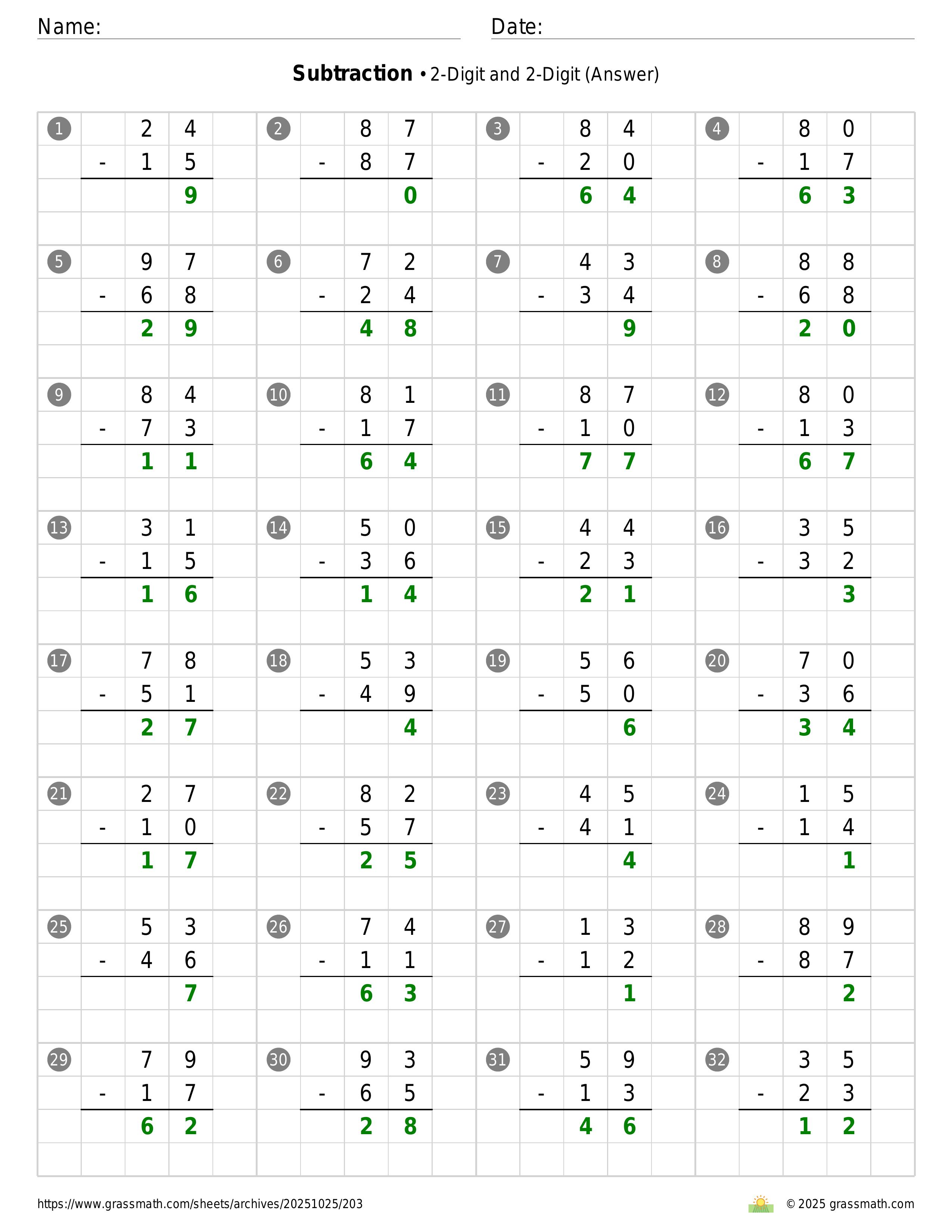 Subtraction 2-Digit and 2-Digit
