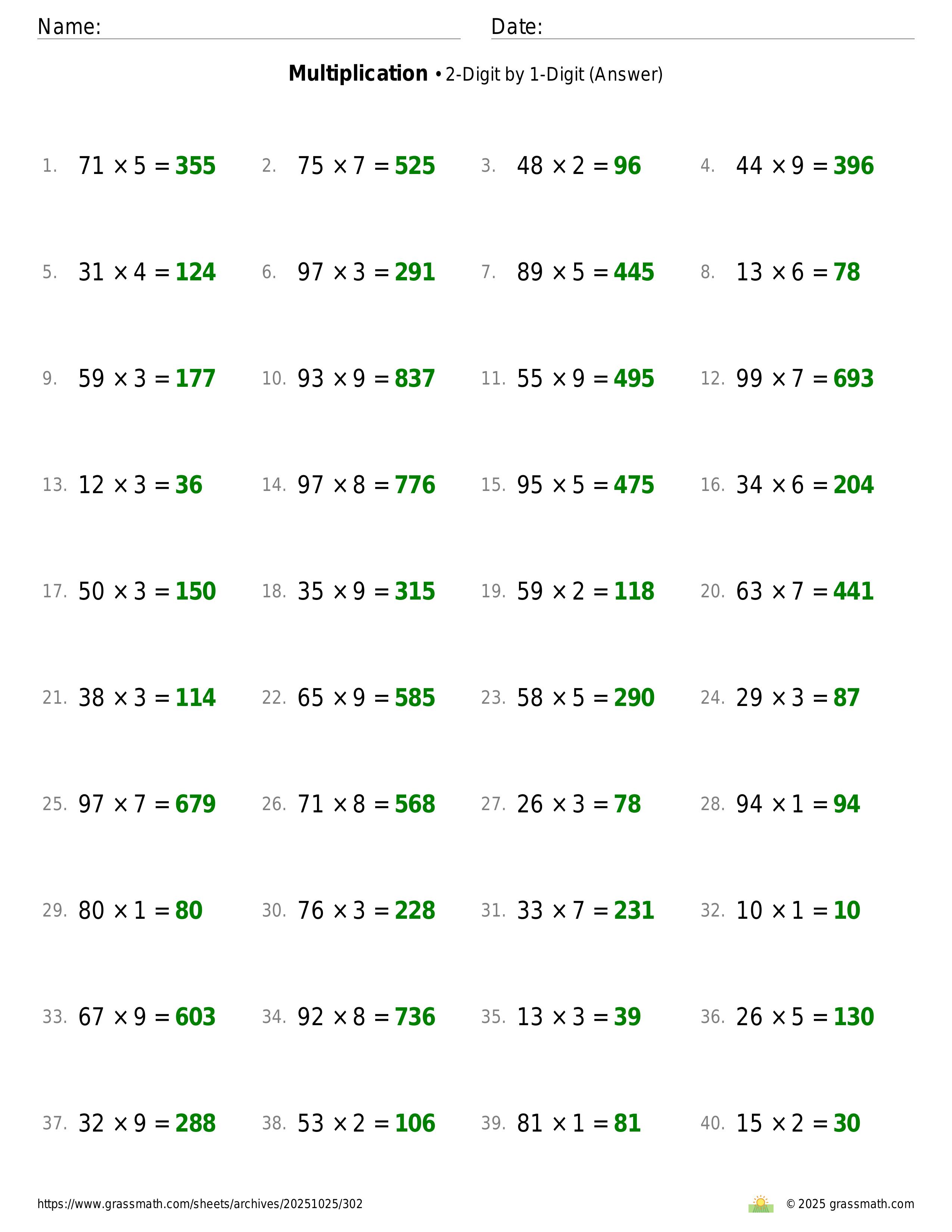 Multiplication 2-Digit by 1-Digit