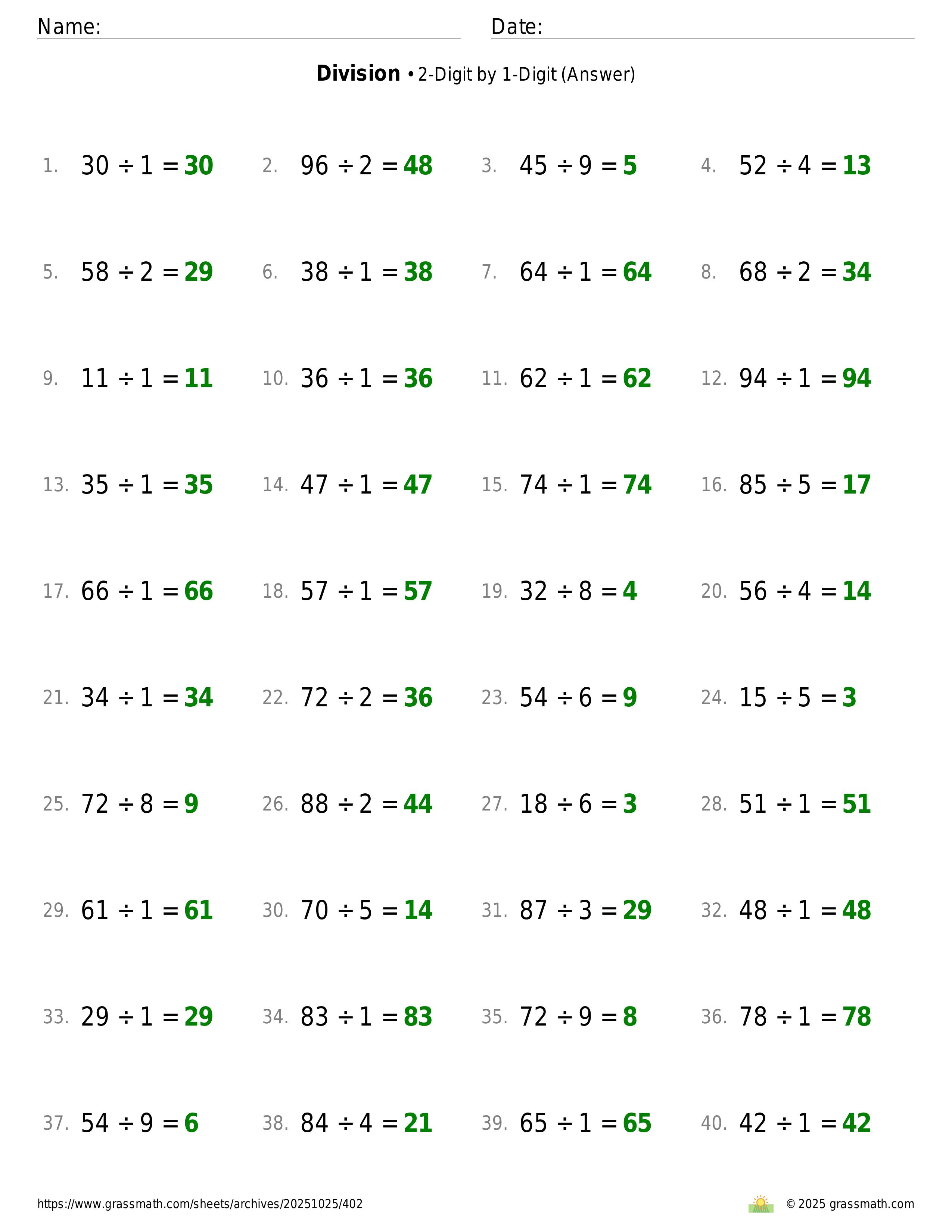 Division 2-Digit by 1-Digit