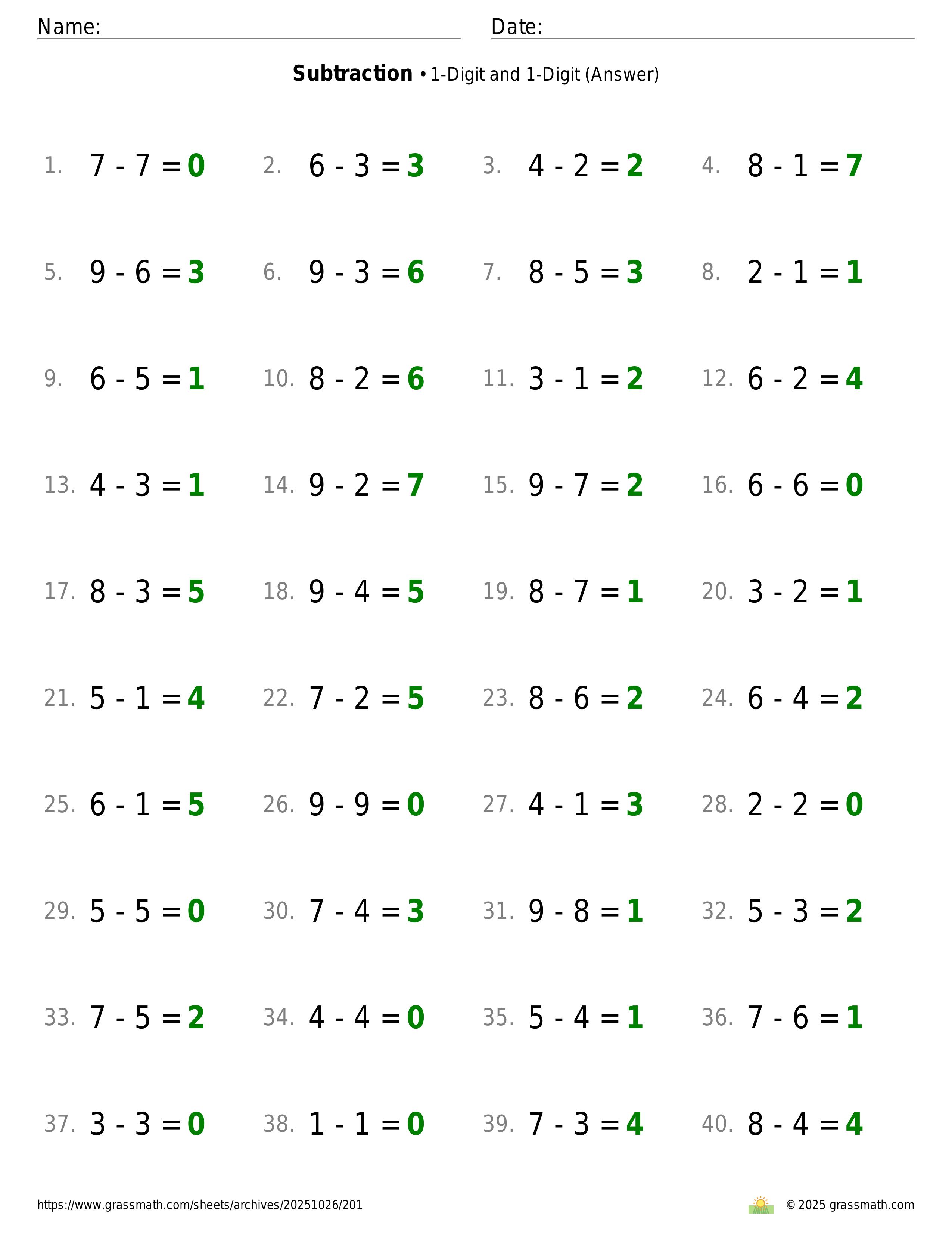 Subtraction 1-Digit and 1-Digit
