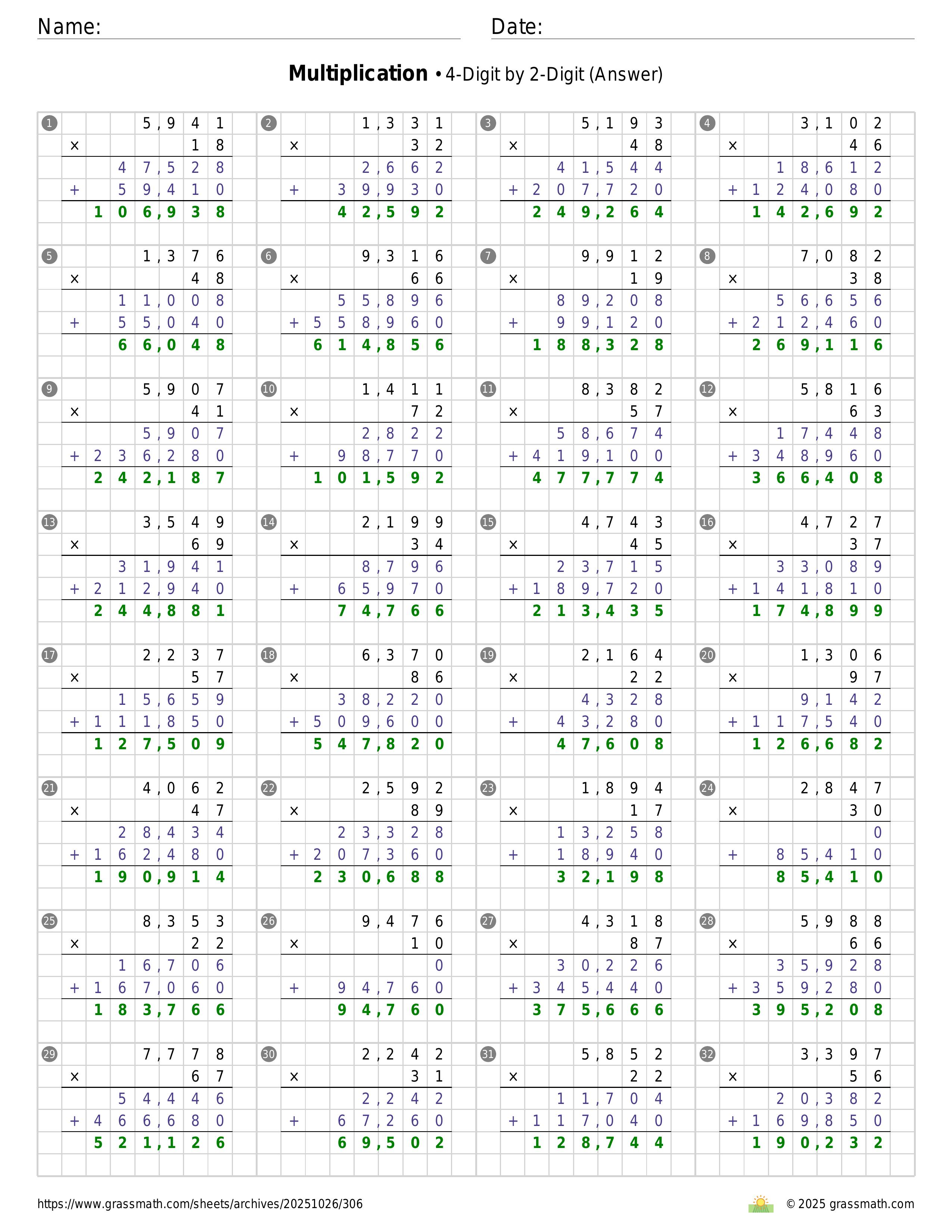 Multiplication 4-Digit by 2-Digit
