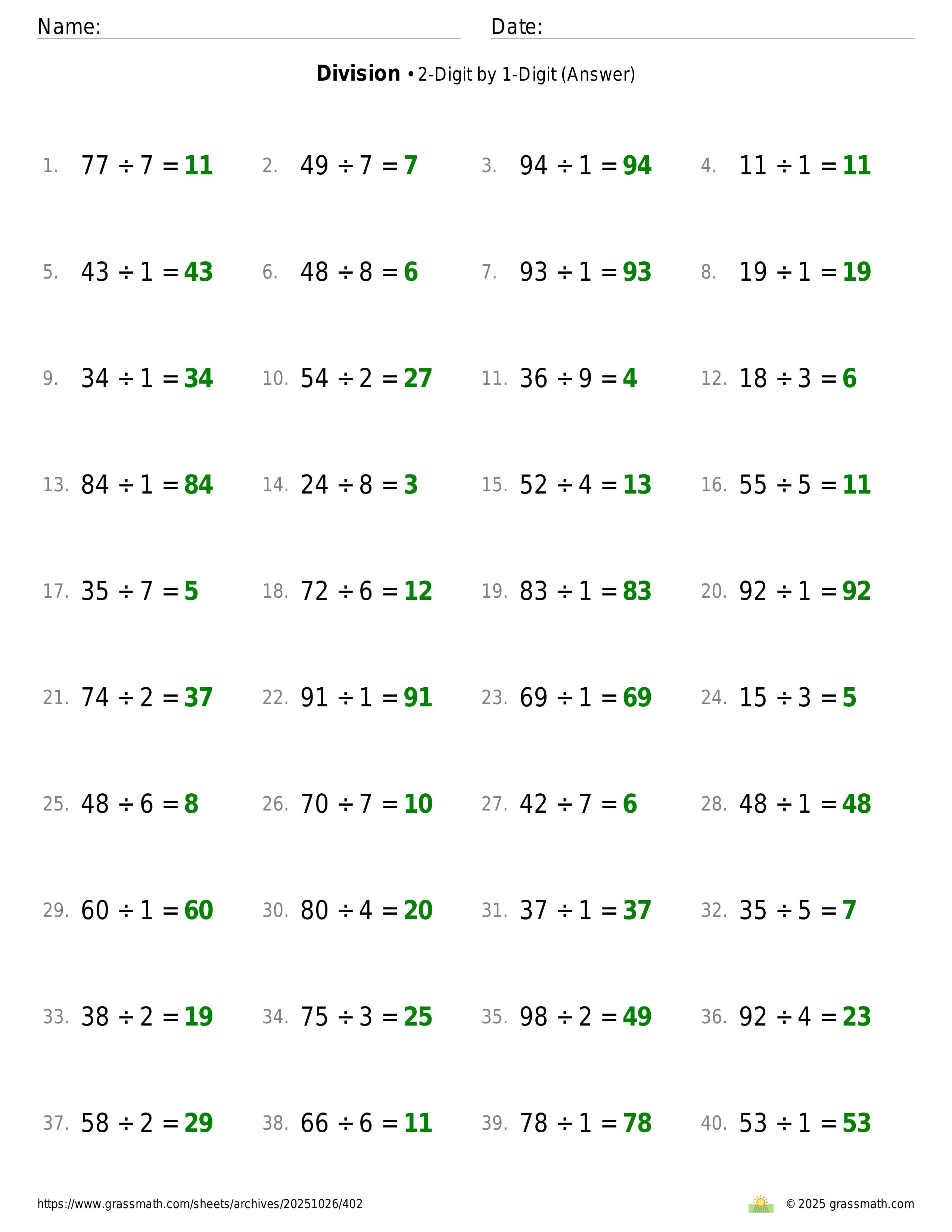 Division 2-Digit by 1-Digit