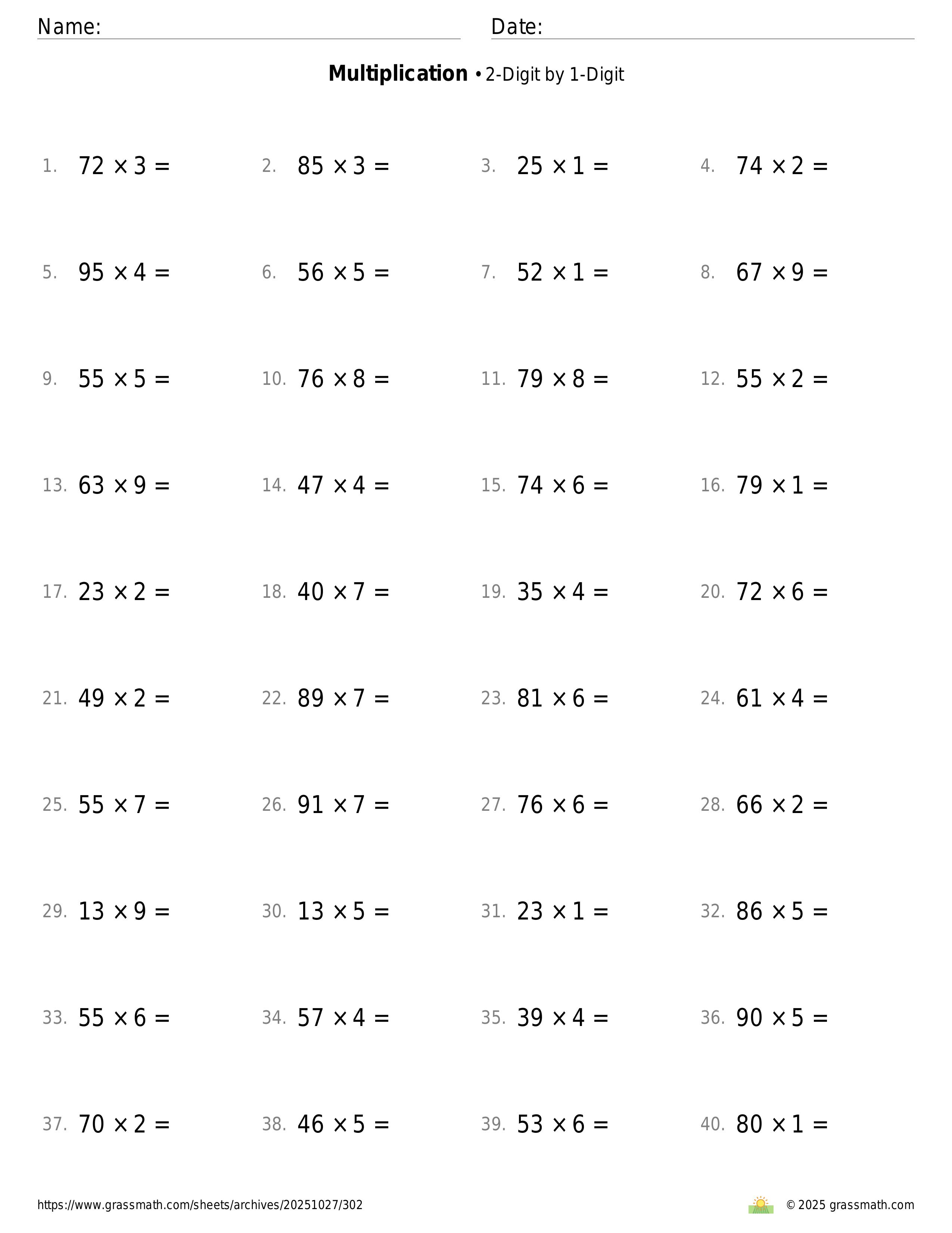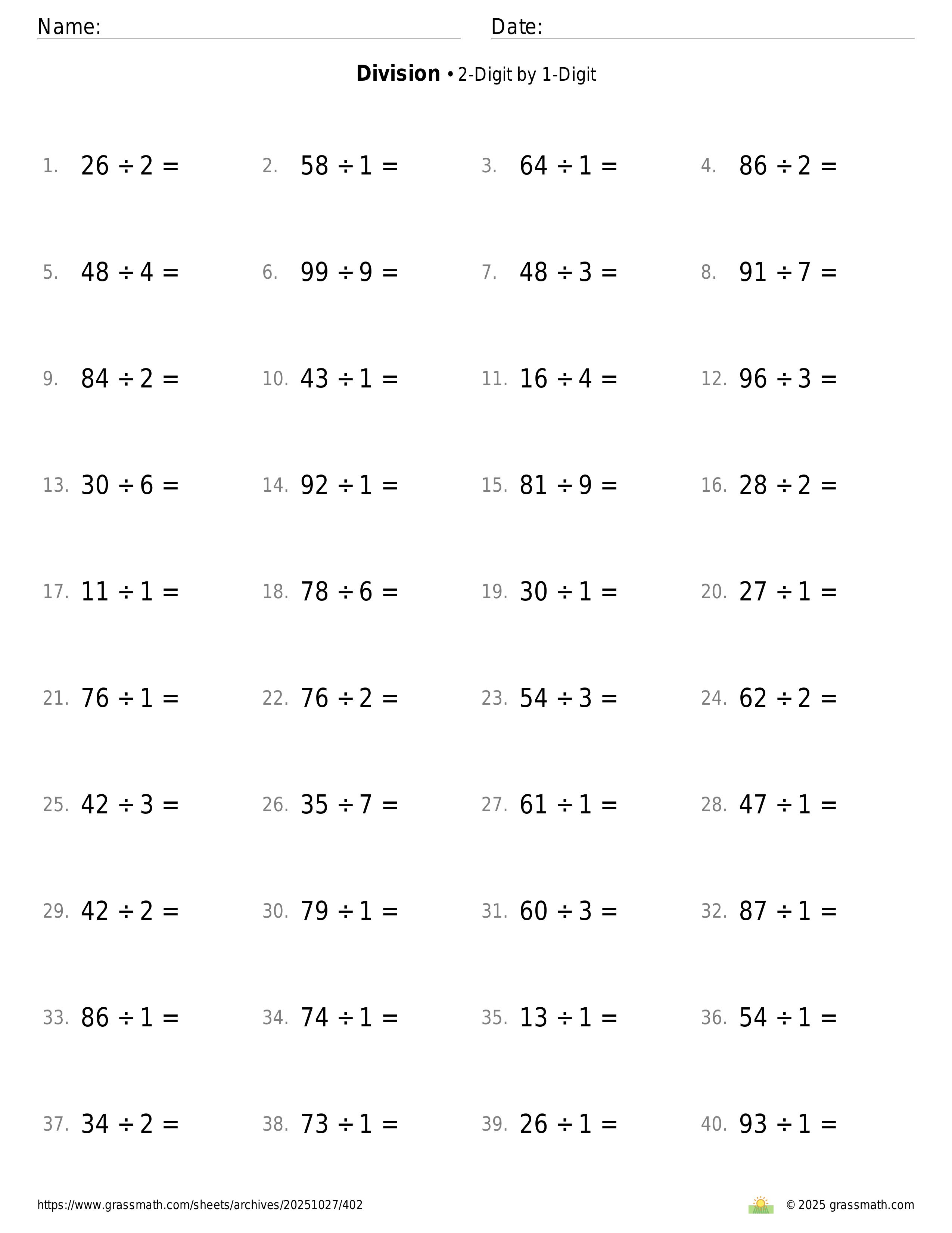 2-Digit by 1-Digit