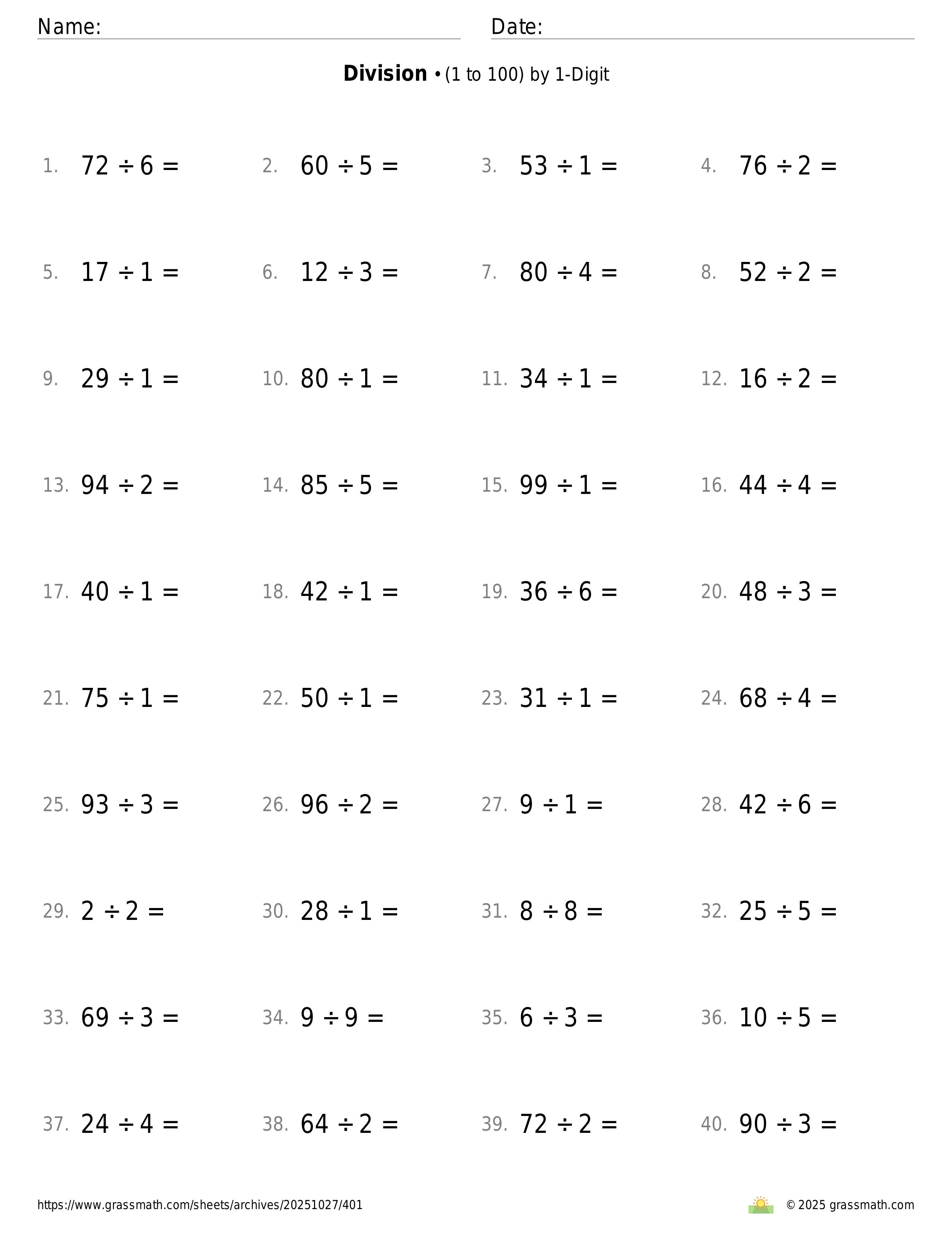 3-Digit by 1-Digit