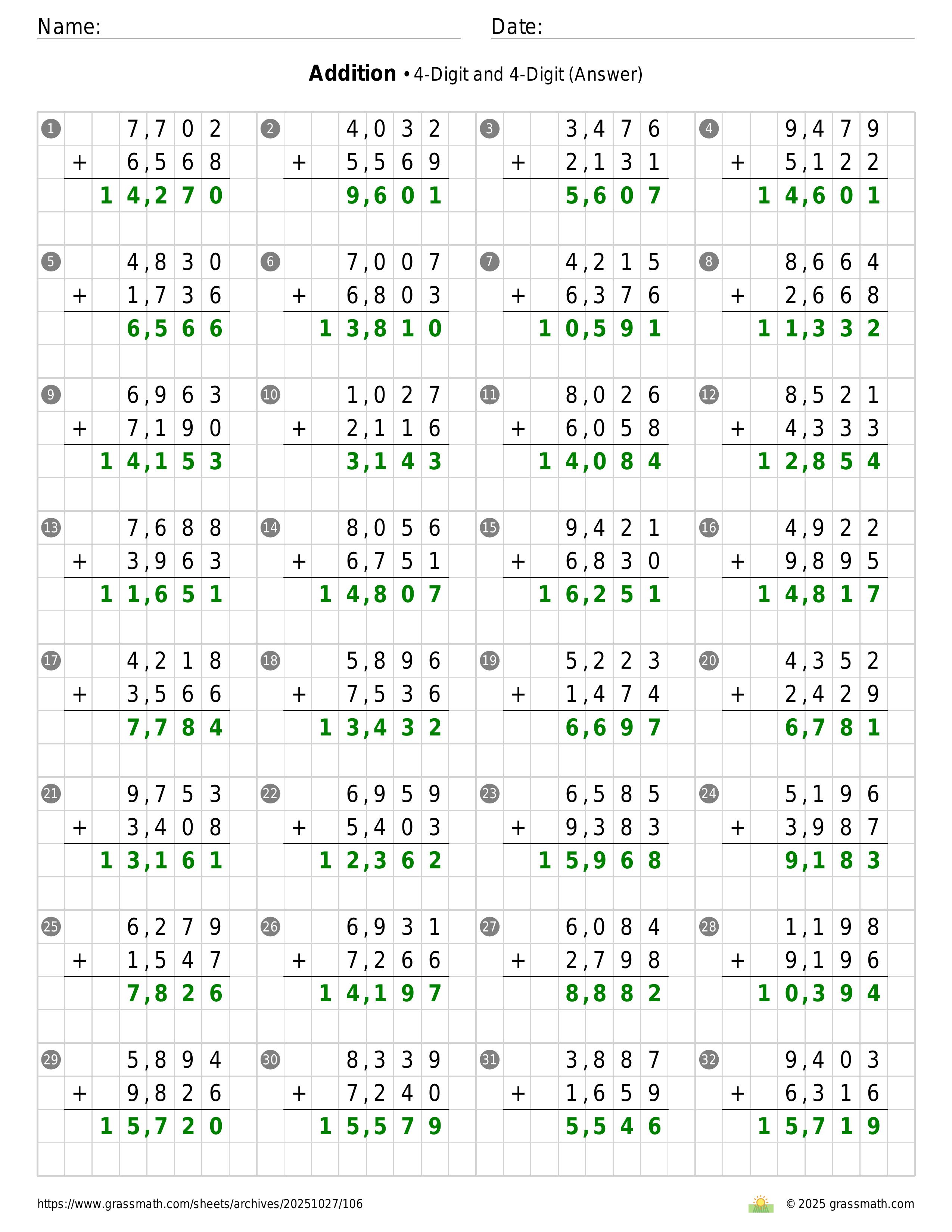Addition 4-Digit and 4-Digit