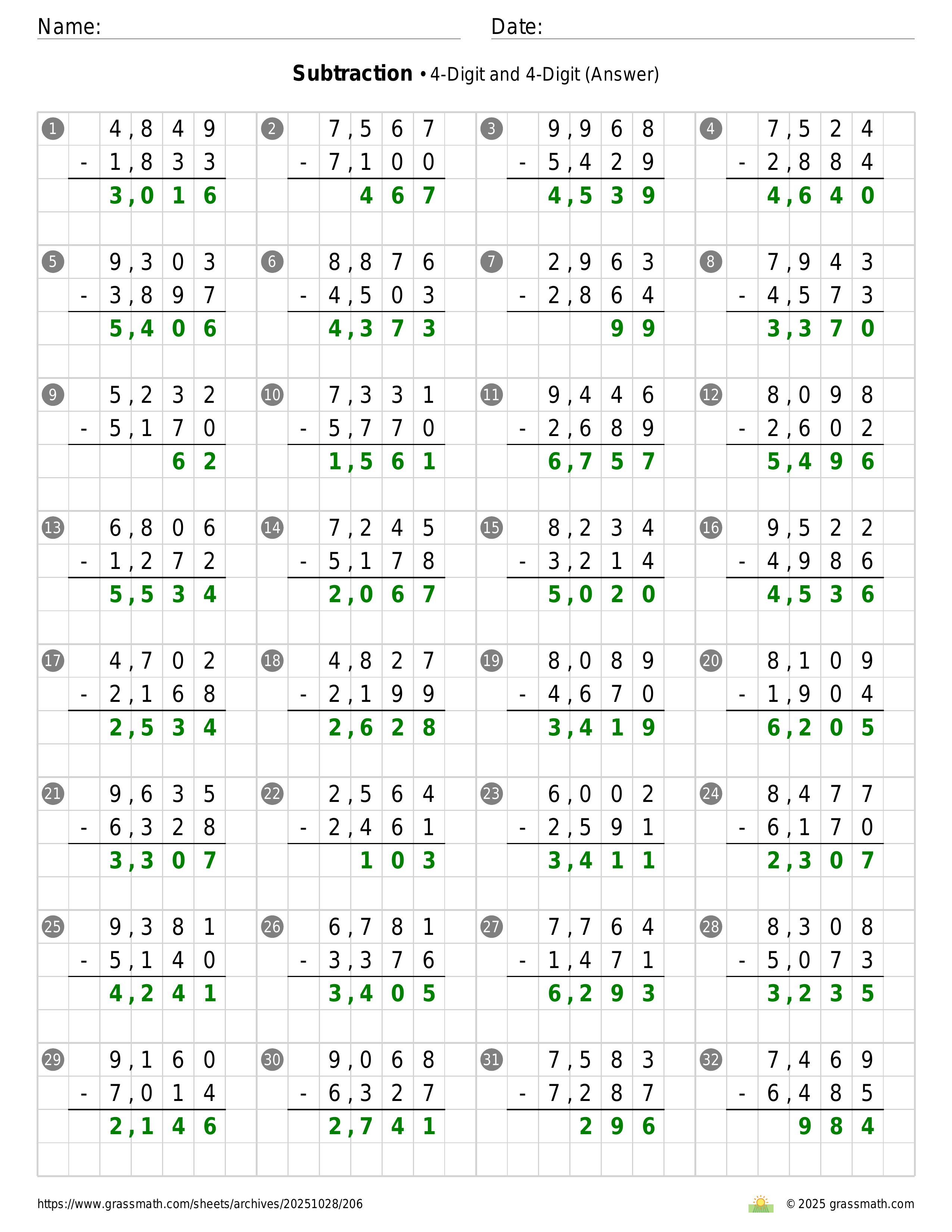 Subtraction 4-Digit and 4-Digit