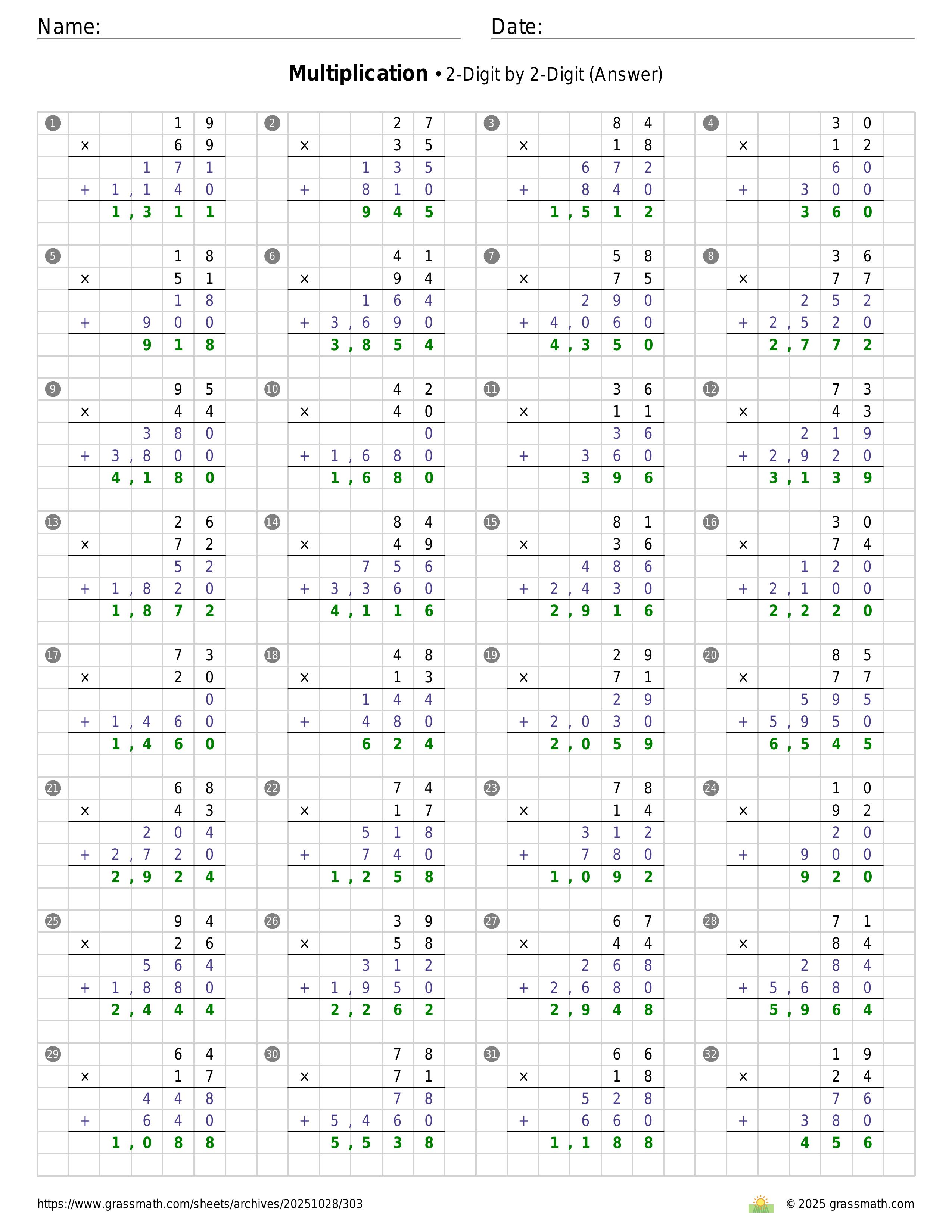 Multiplication 2-Digit by 2-Digit