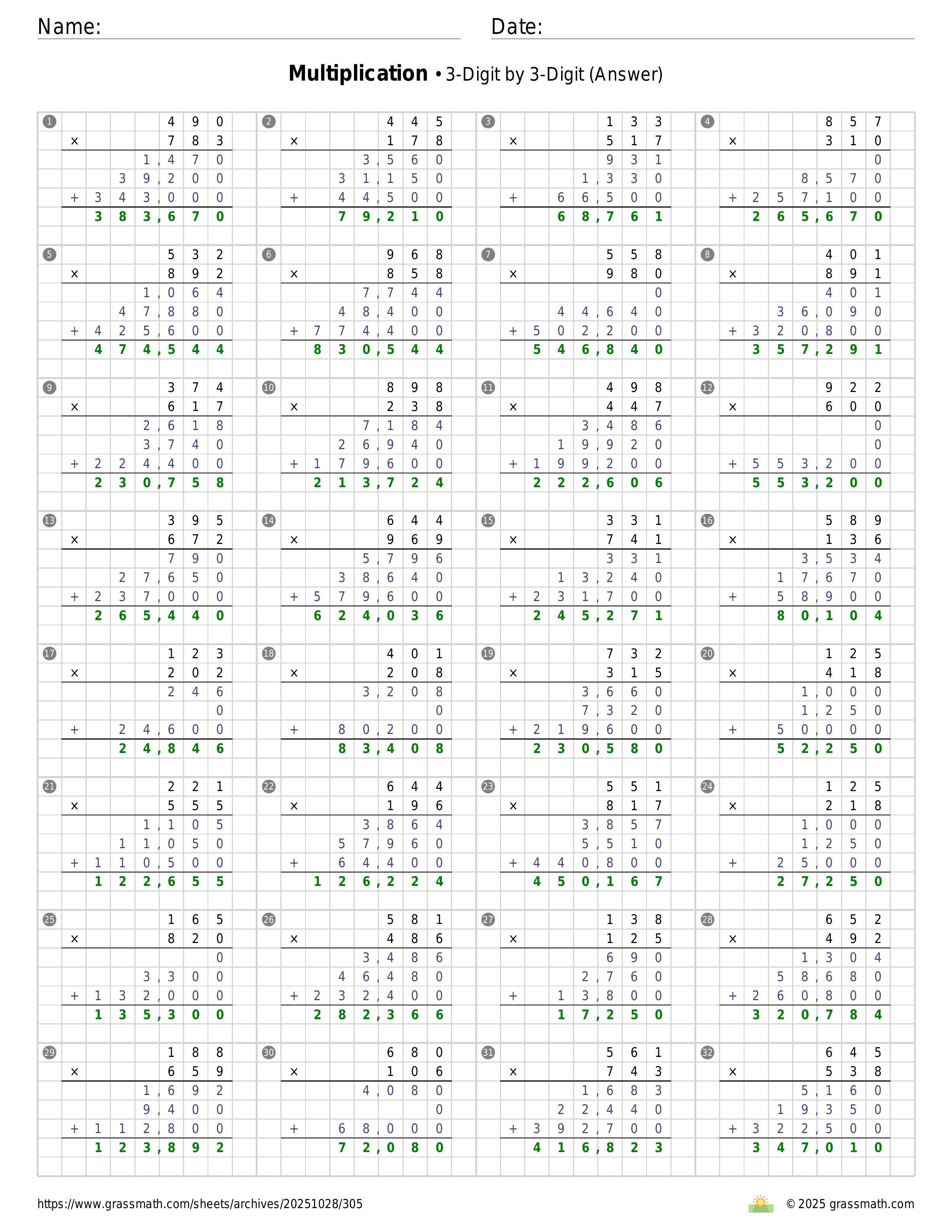 Multiplication 3-Digit by 3-Digit