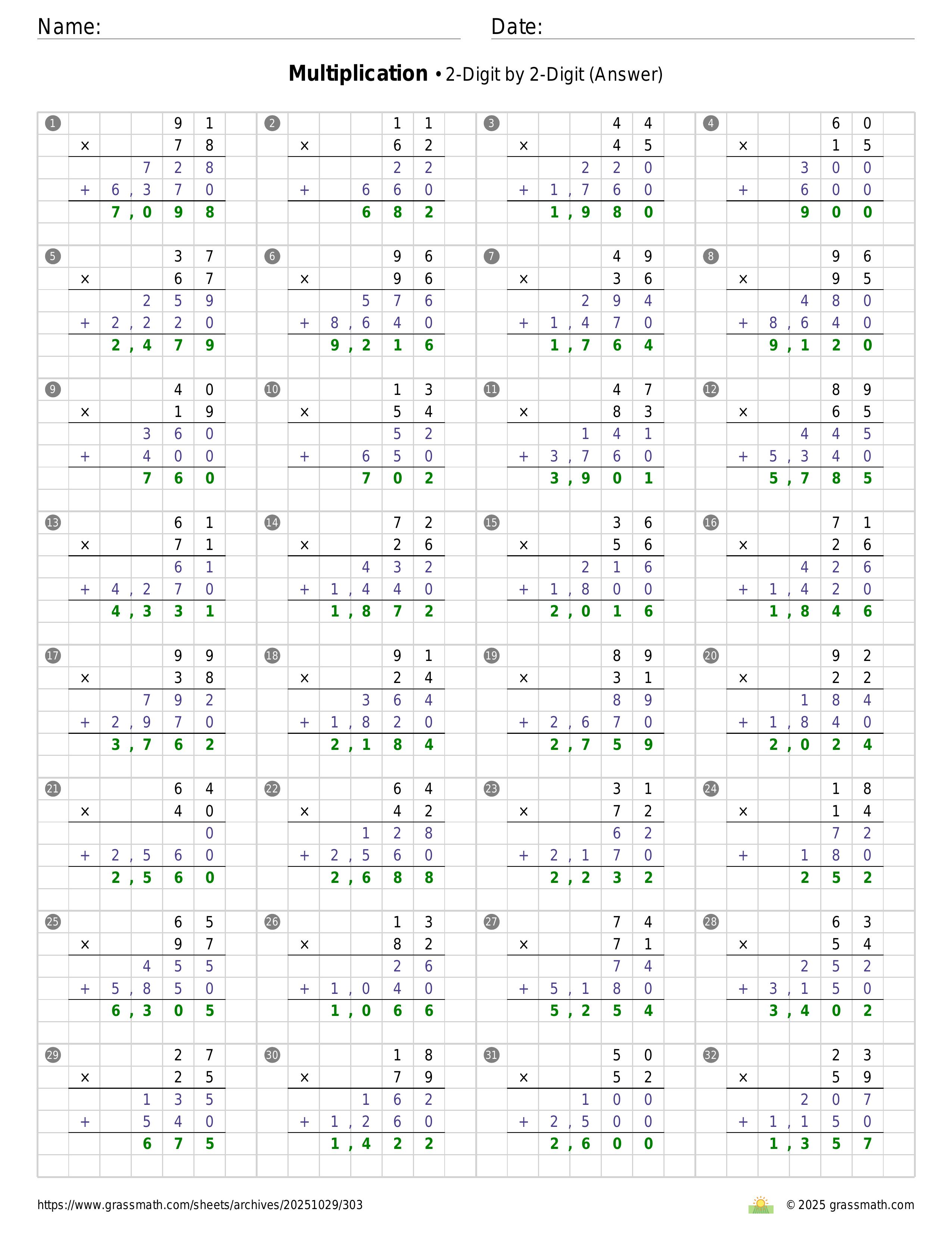 Multiplication 2-Digit by 2-Digit