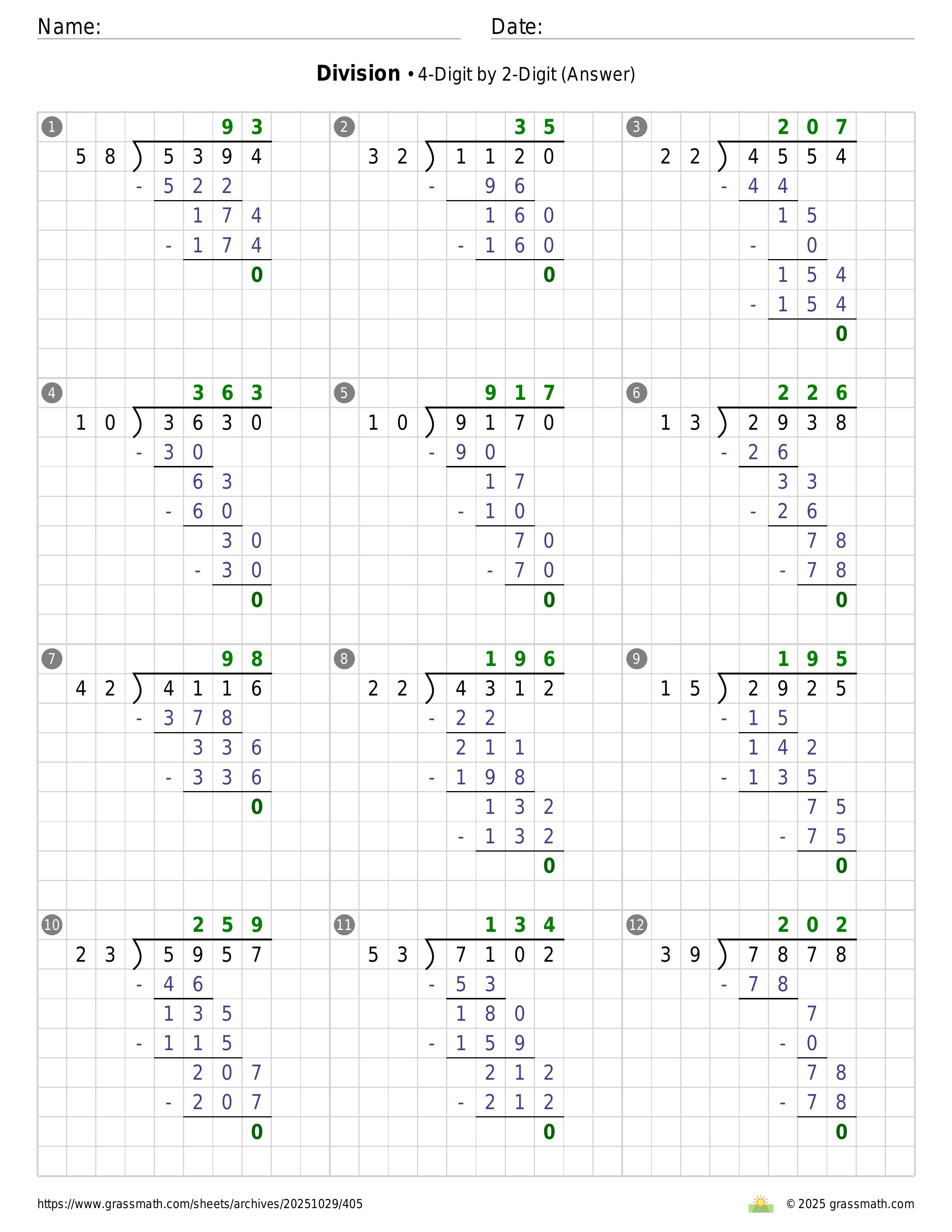 Division 4-Digit by 2-Digit