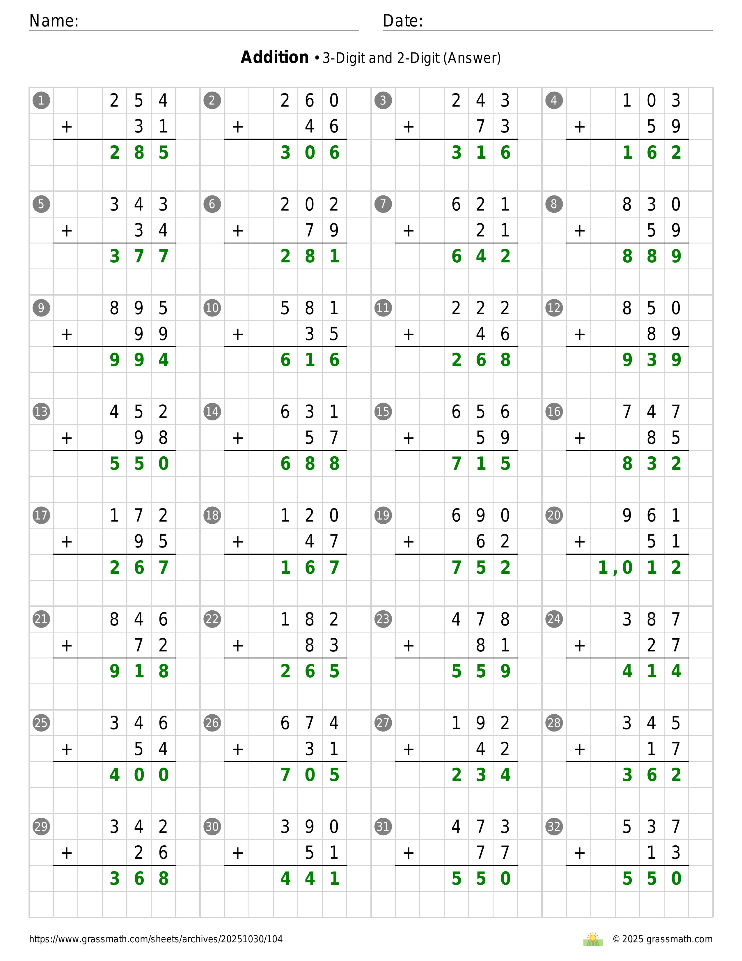 Addition 3-Digit and 2-Digit