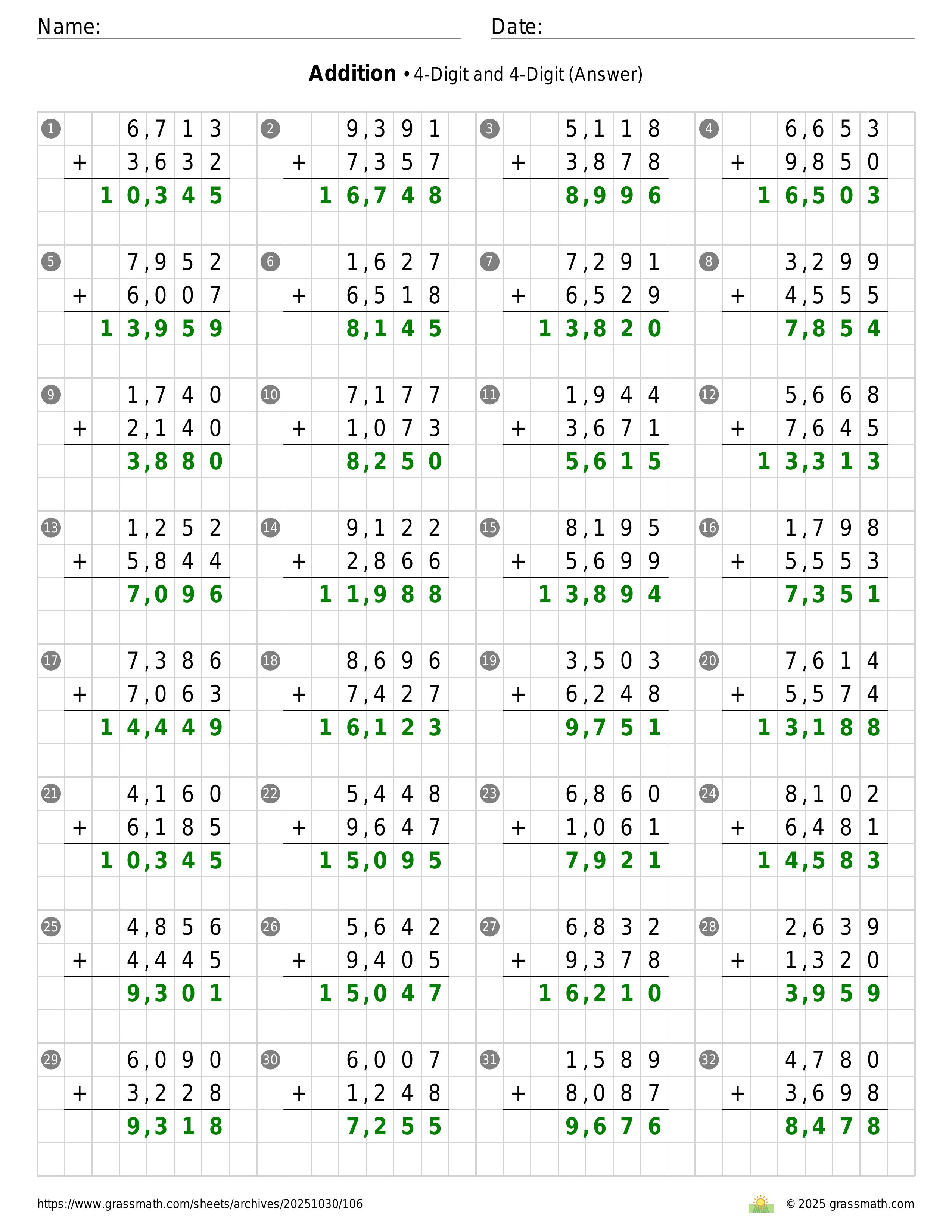 Addition 4-Digit and 4-Digit