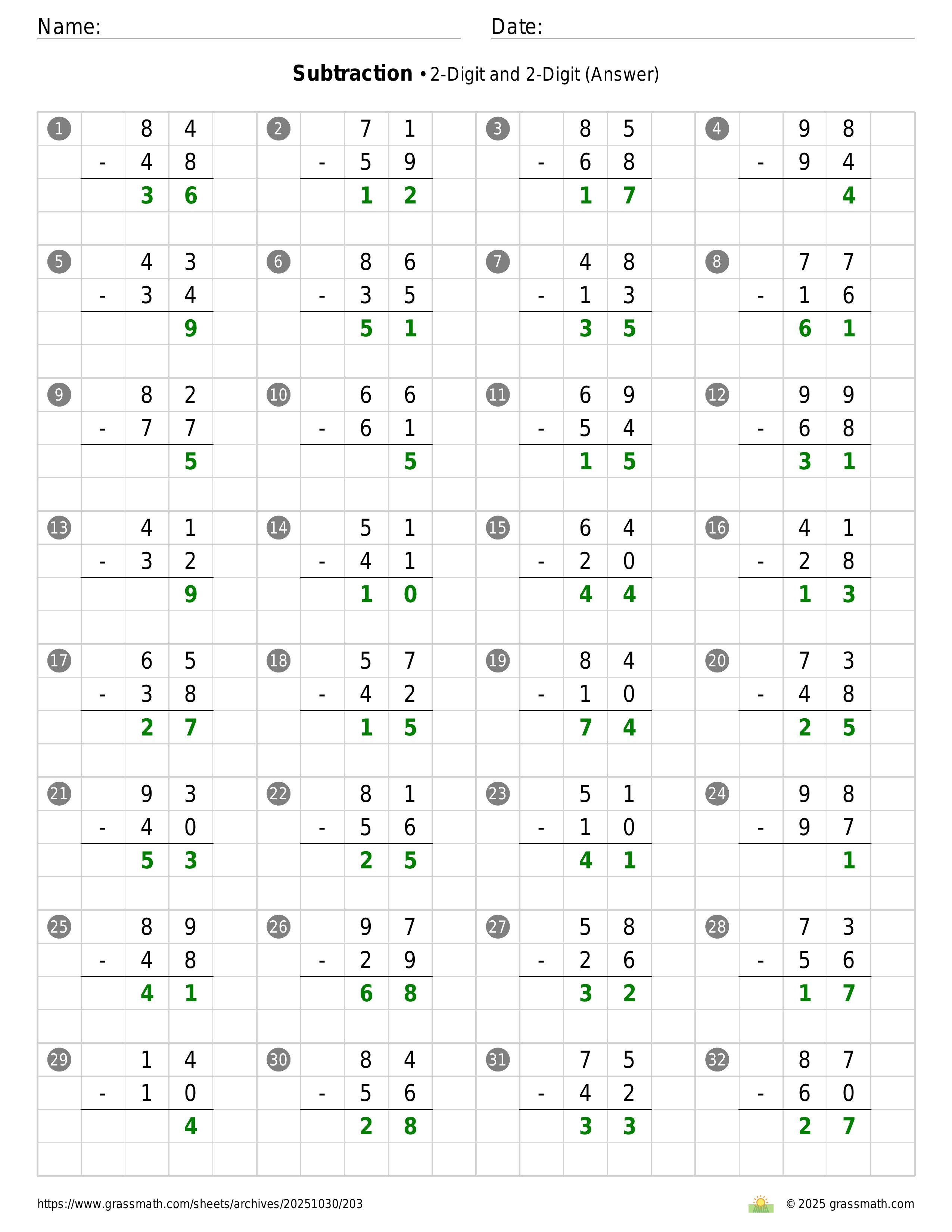 Subtraction 2-Digit and 2-Digit