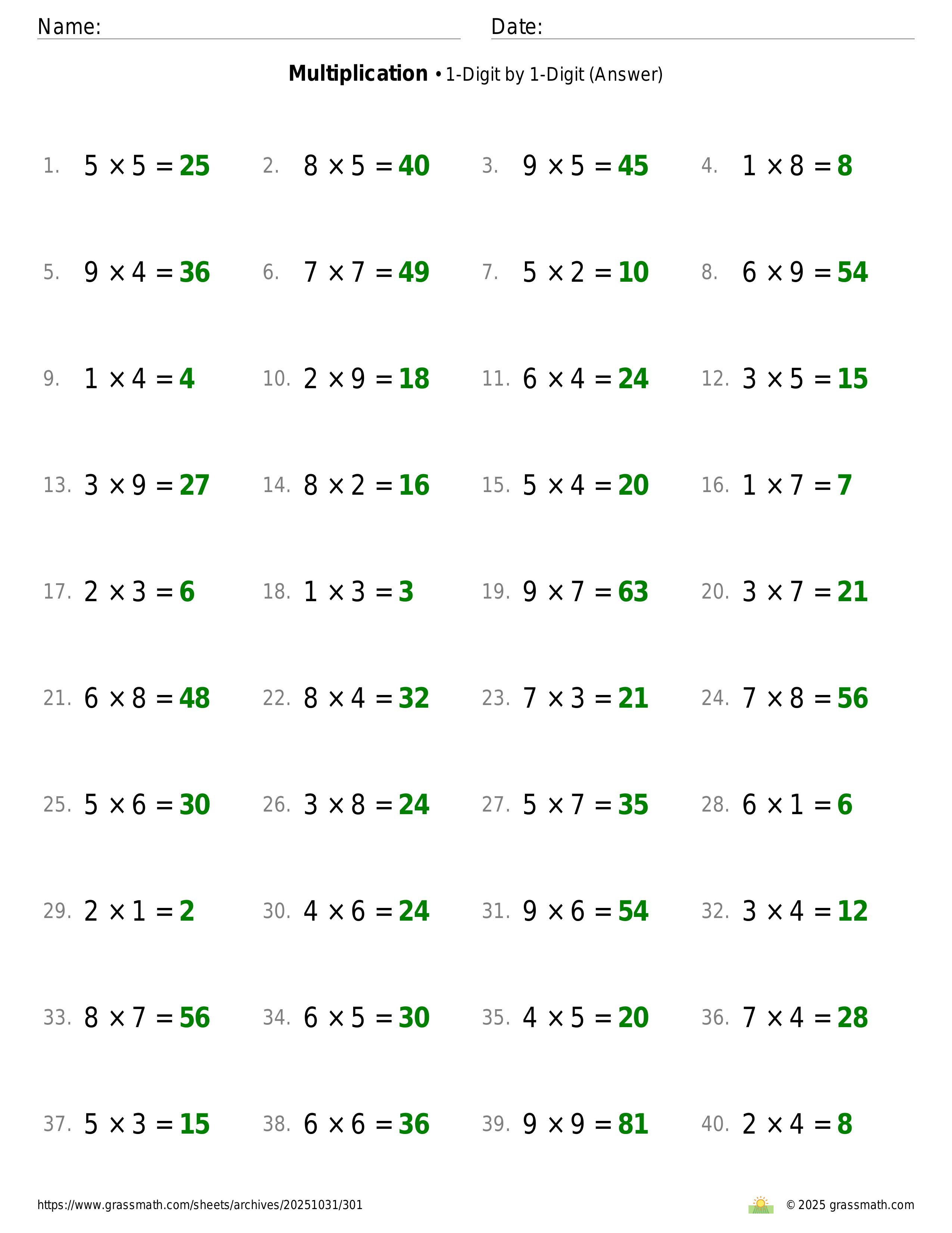Multiplication 1-Digit by 1-Digit