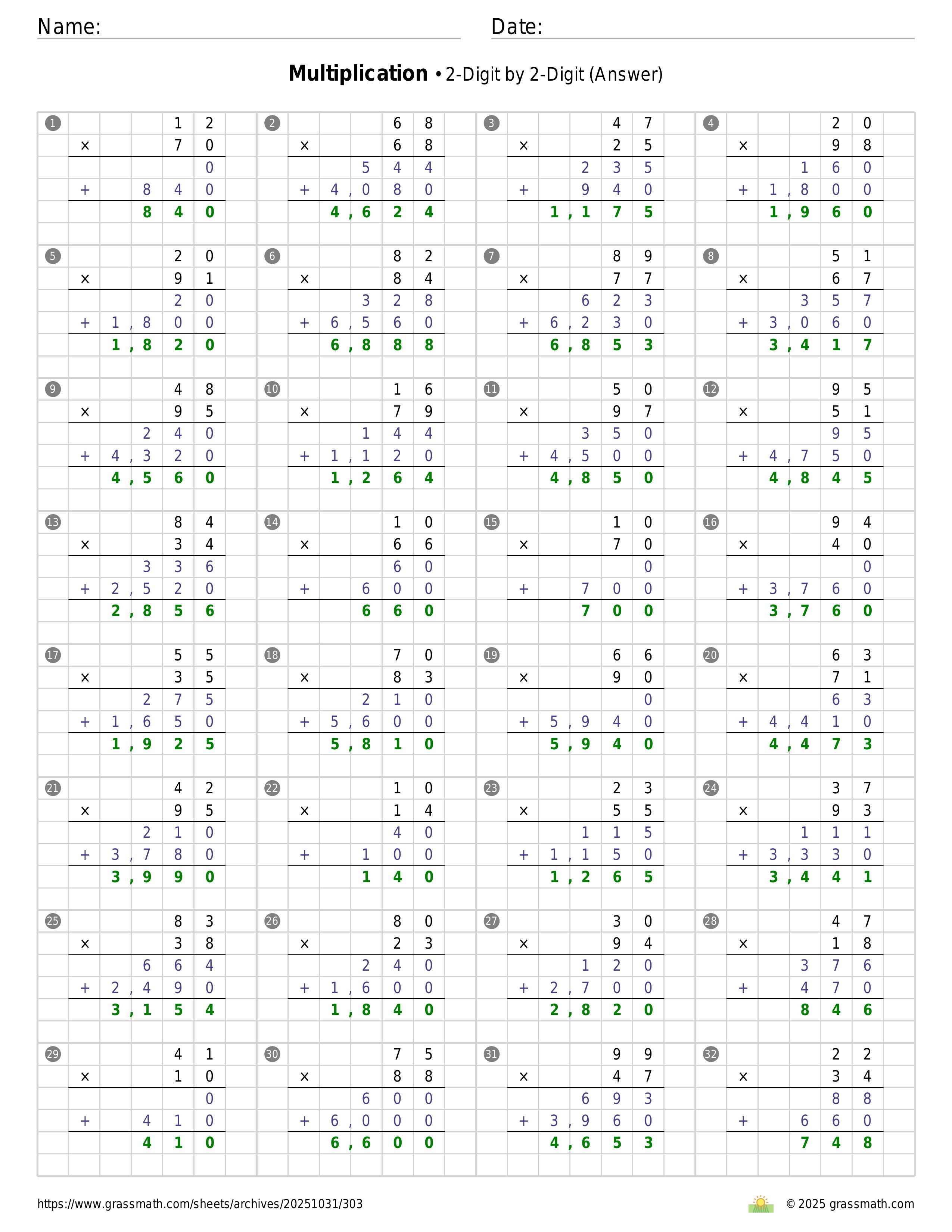 Multiplication 2-Digit by 2-Digit