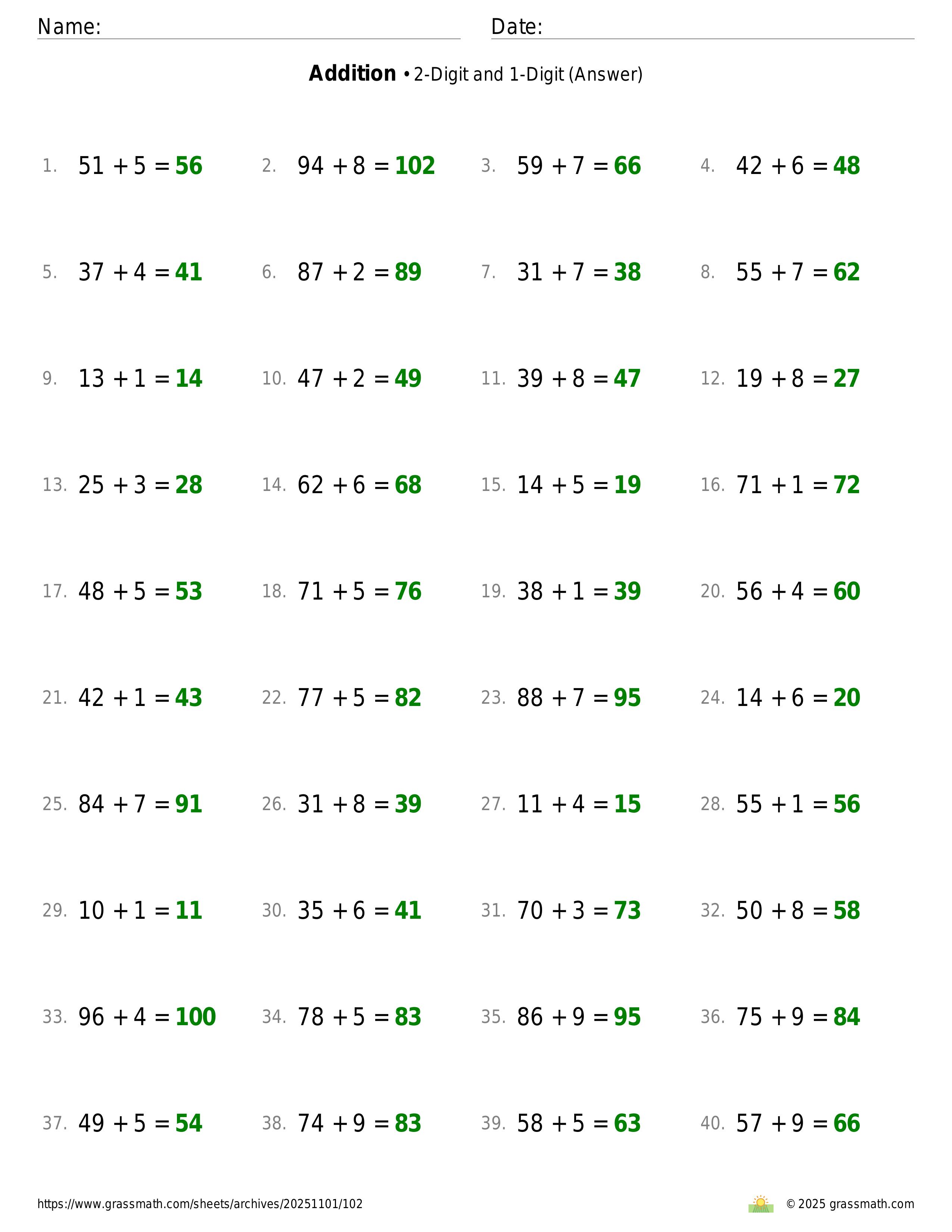 Addition 2-Digit and 1-Digit