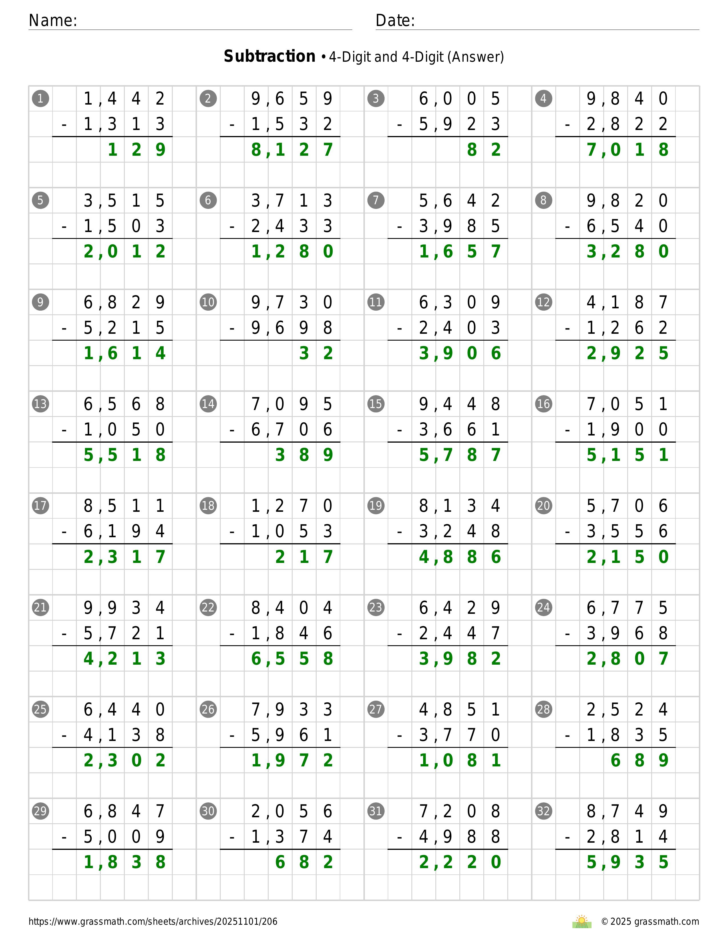 Subtraction 4-Digit and 4-Digit