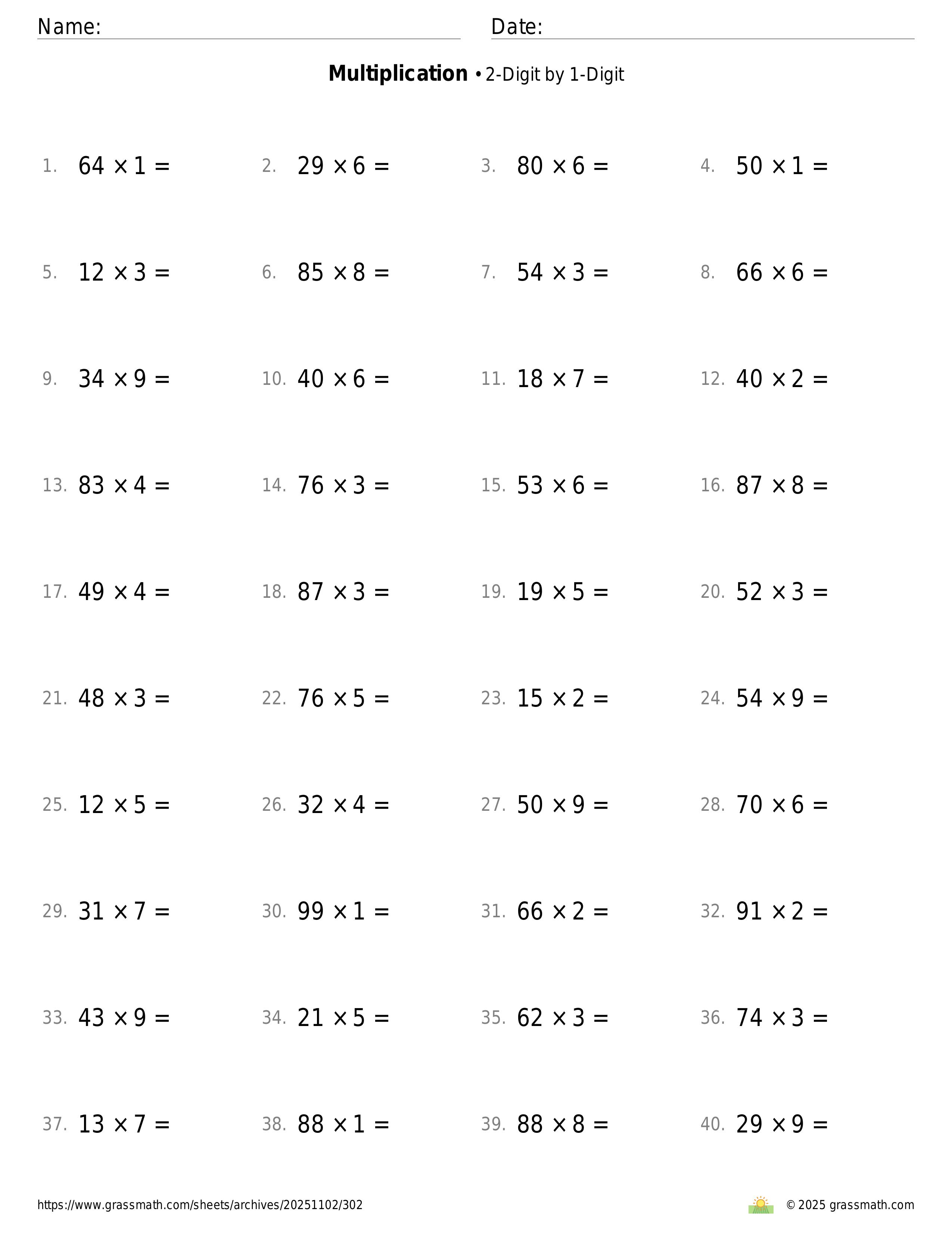 2-Digit by 1-Digit