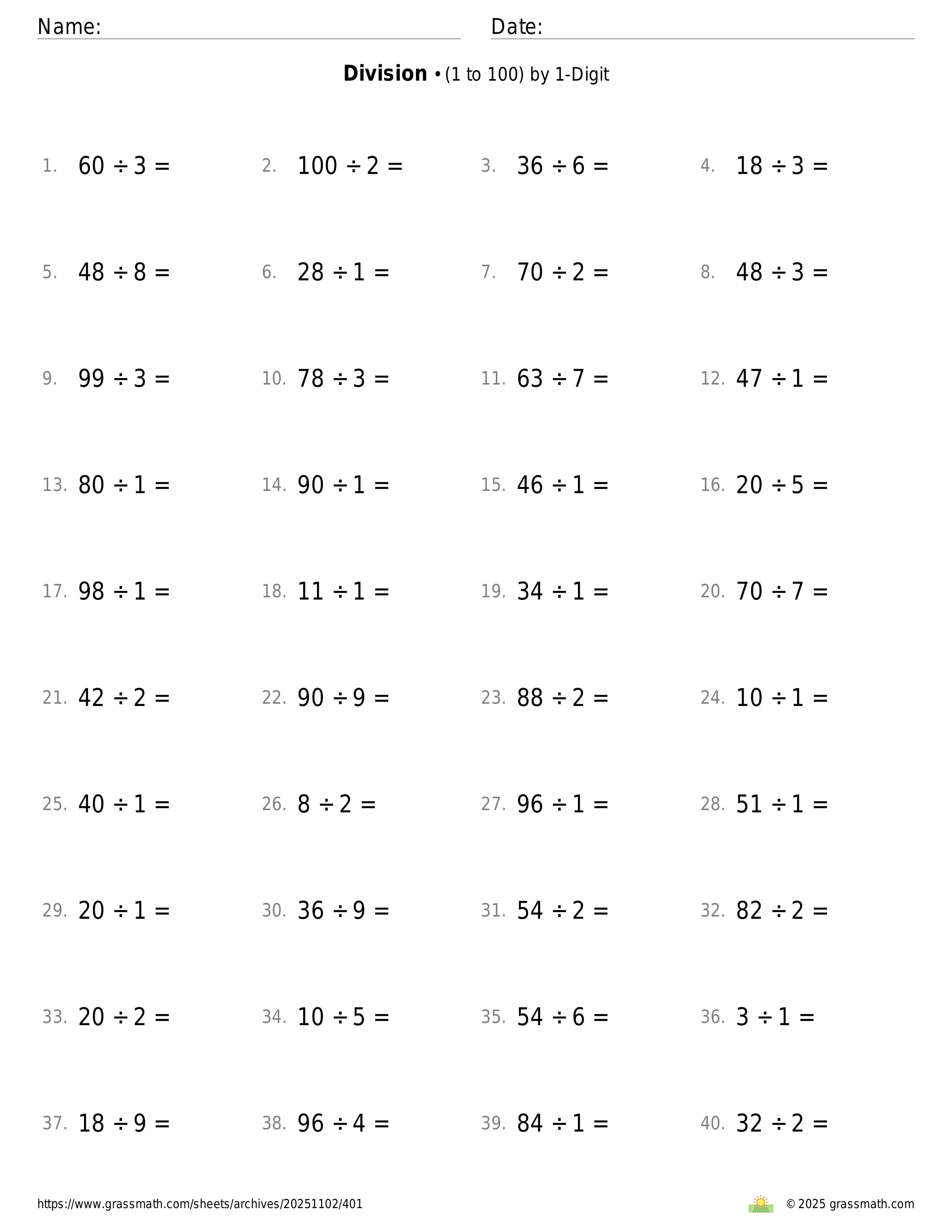 3-Digit by 1-Digit