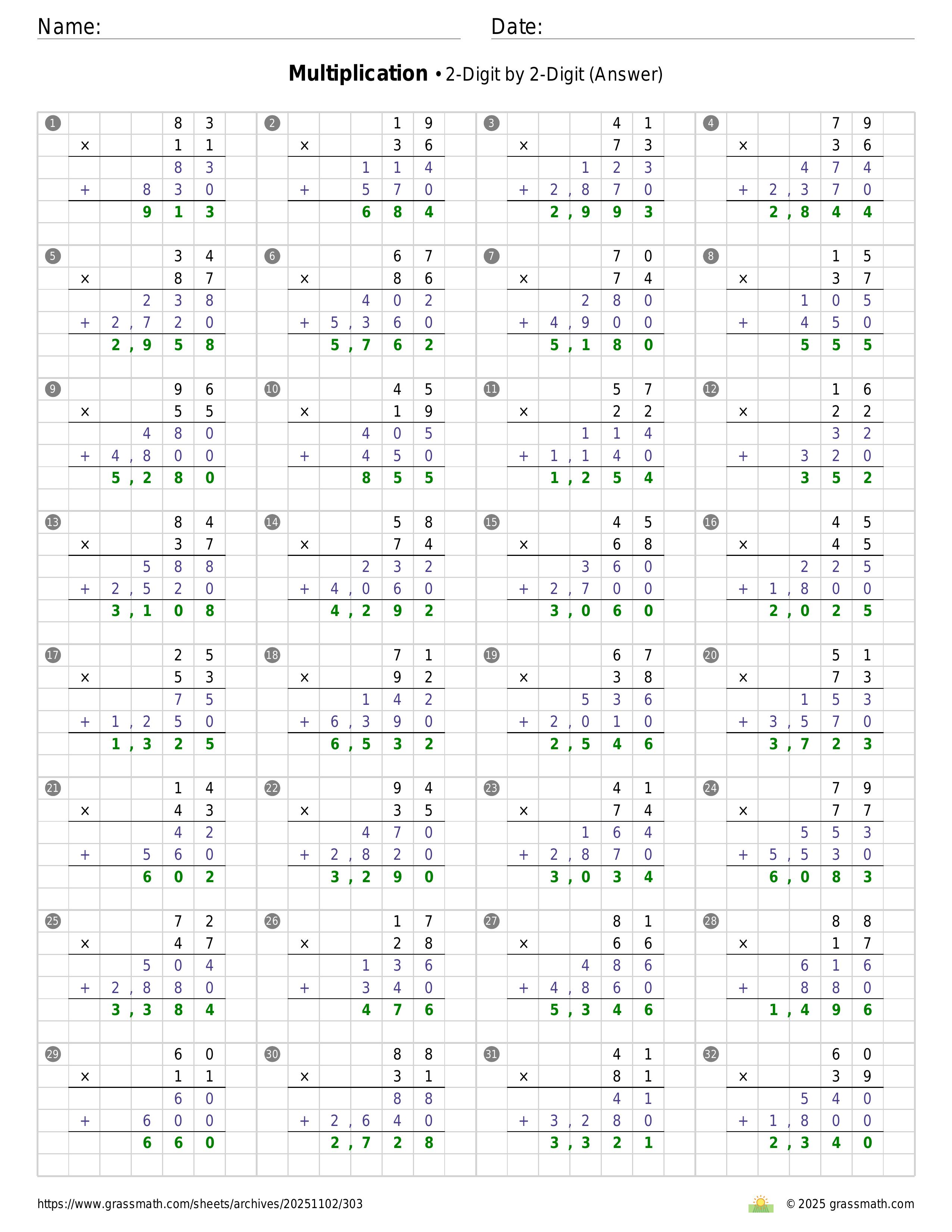Multiplication 2-Digit by 2-Digit