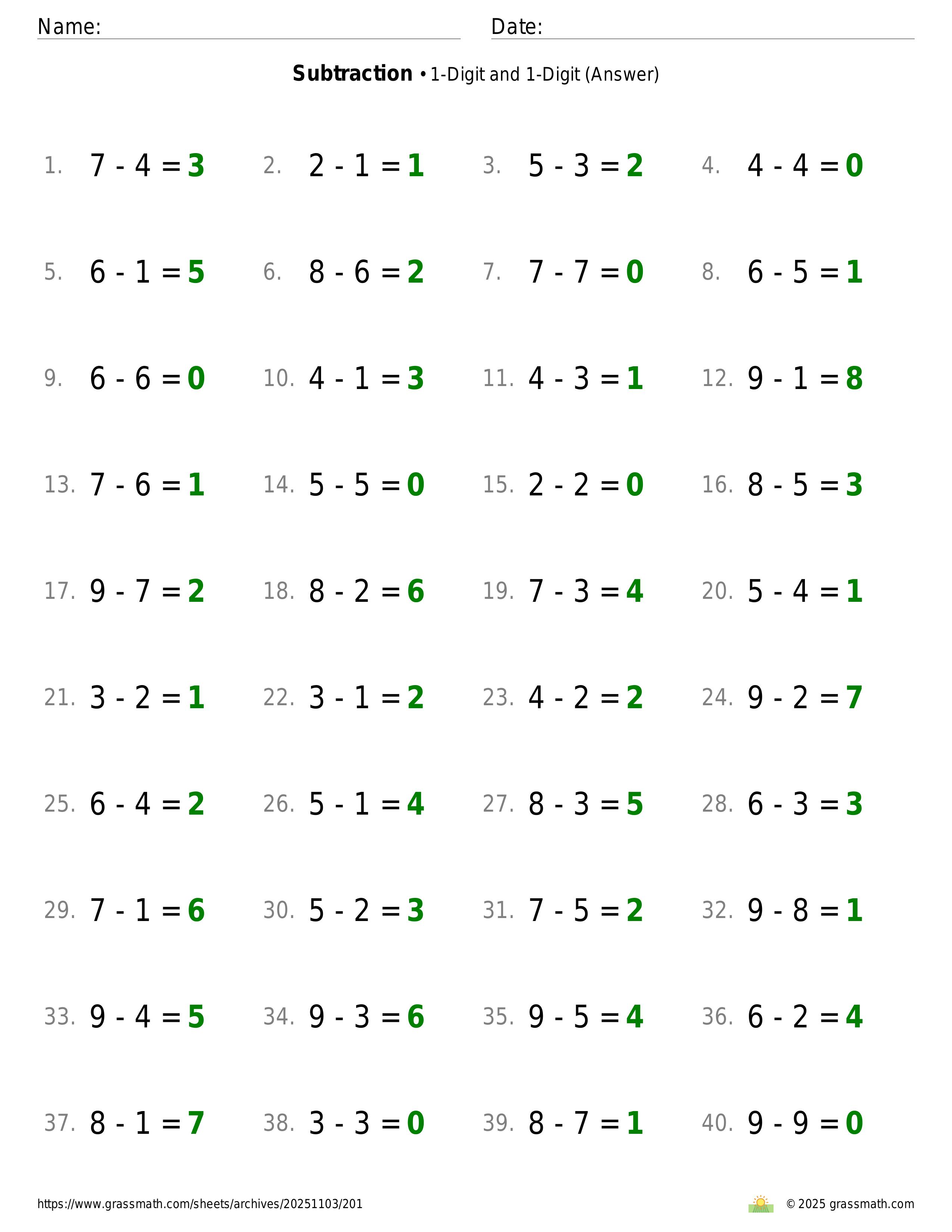 Subtraction 1-Digit and 1-Digit