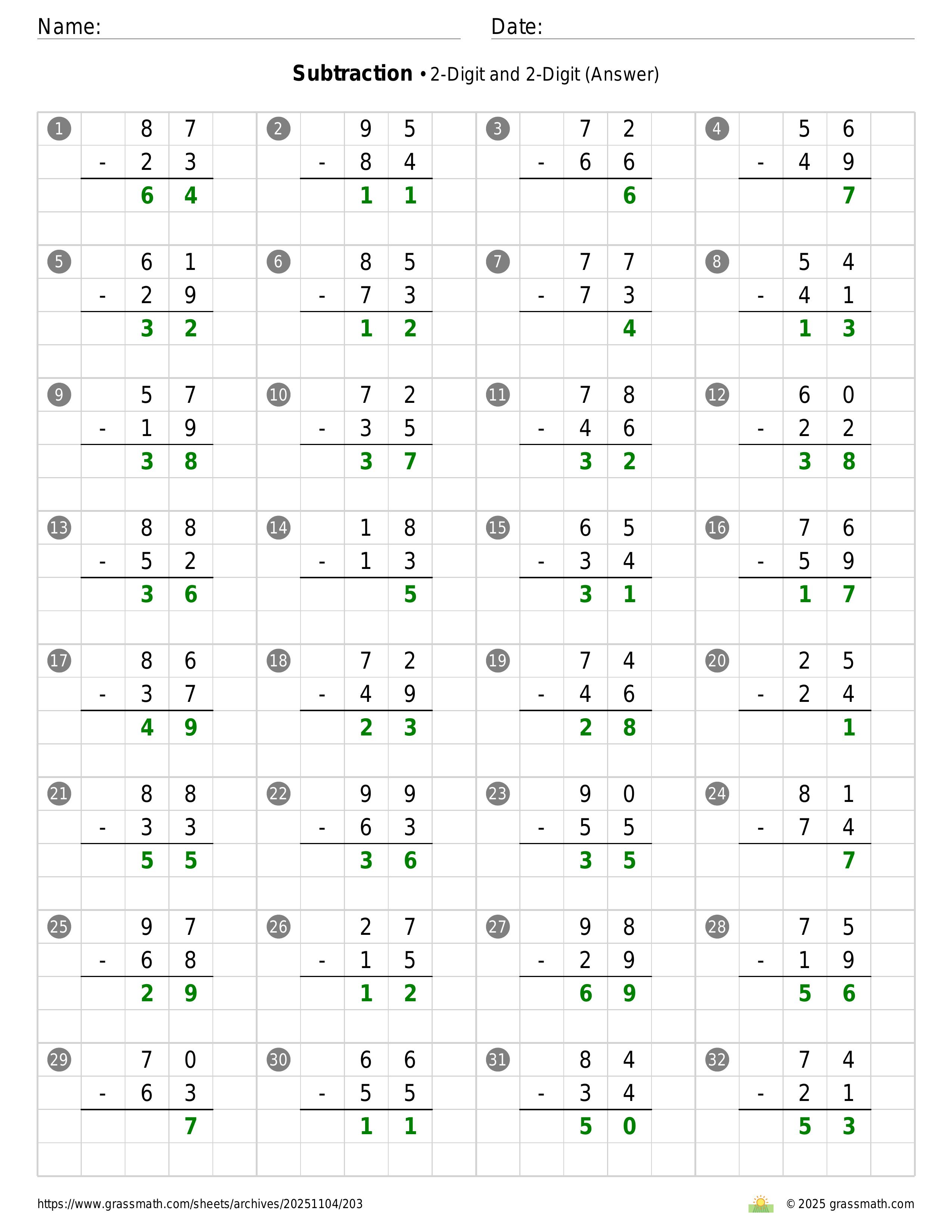 Subtraction 2-Digit and 2-Digit