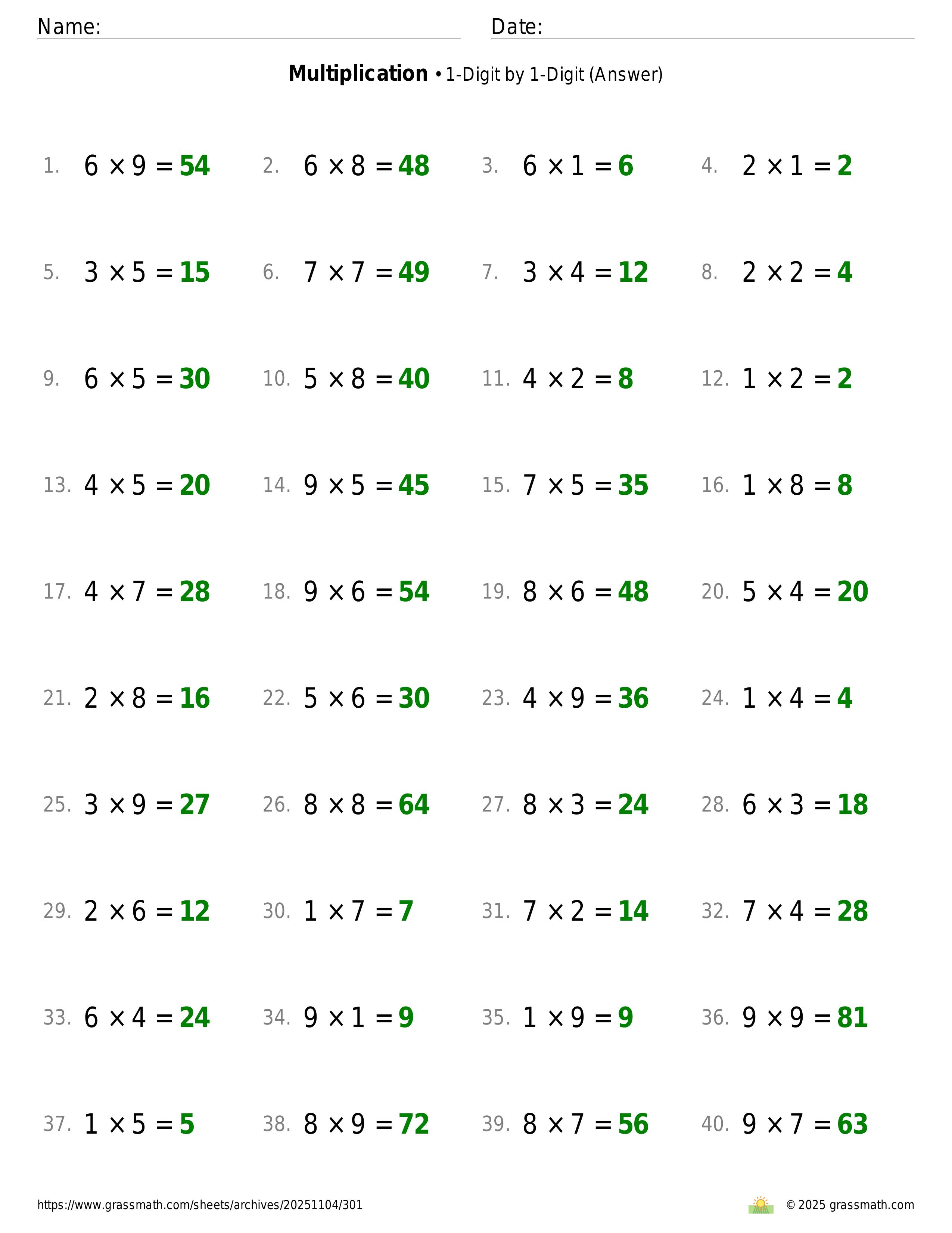 Multiplication 1-Digit by 1-Digit