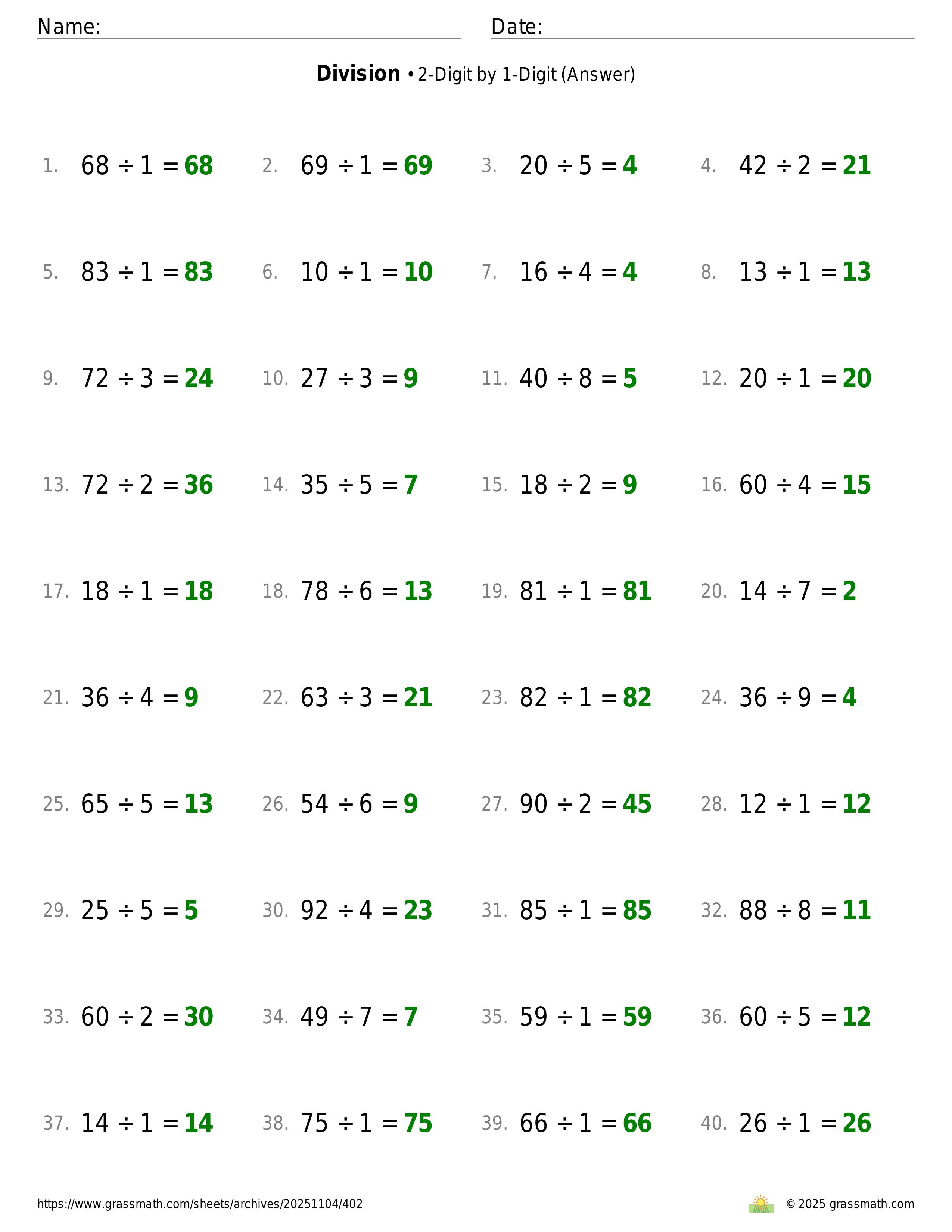 Division 2-Digit by 1-Digit