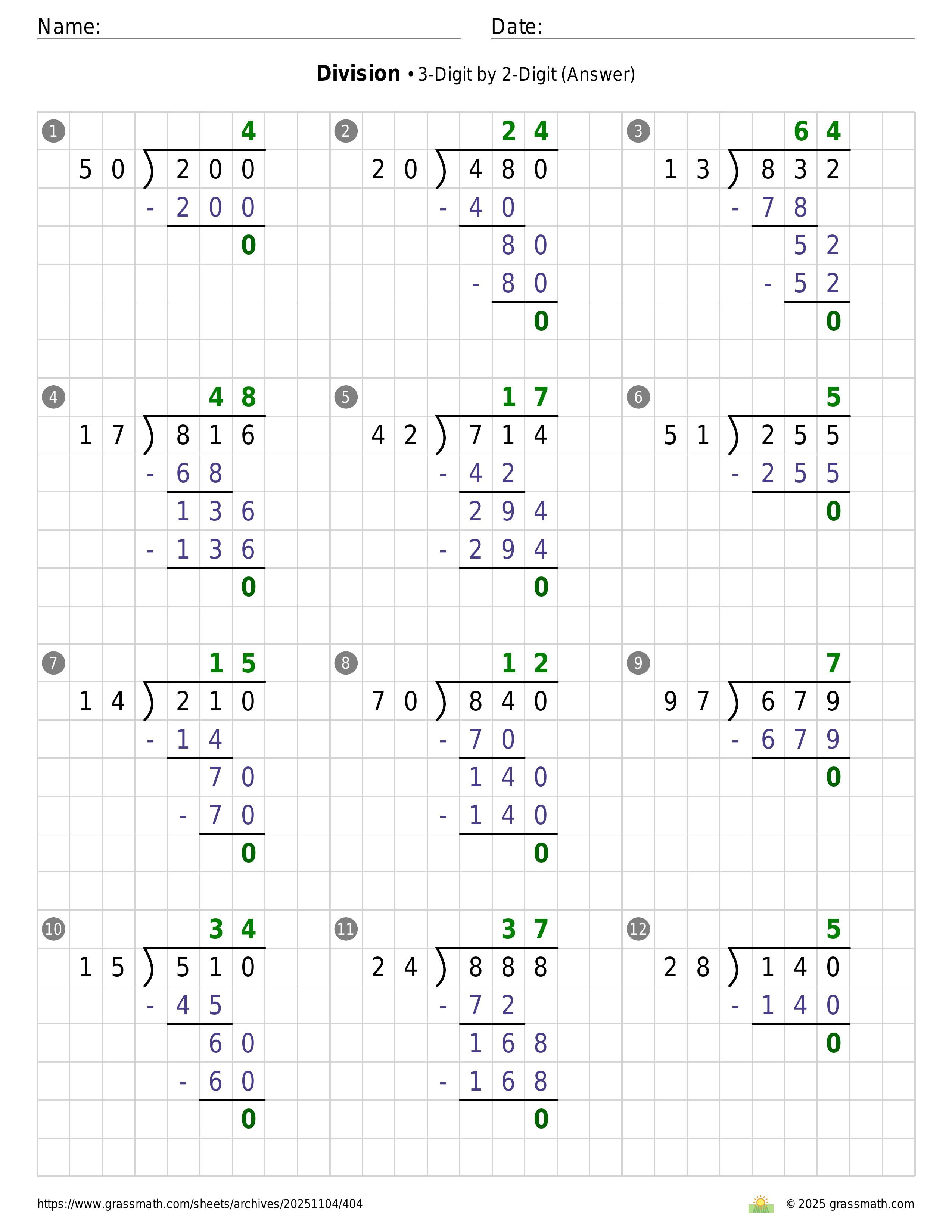 Division 3-Digit by 2-Digit