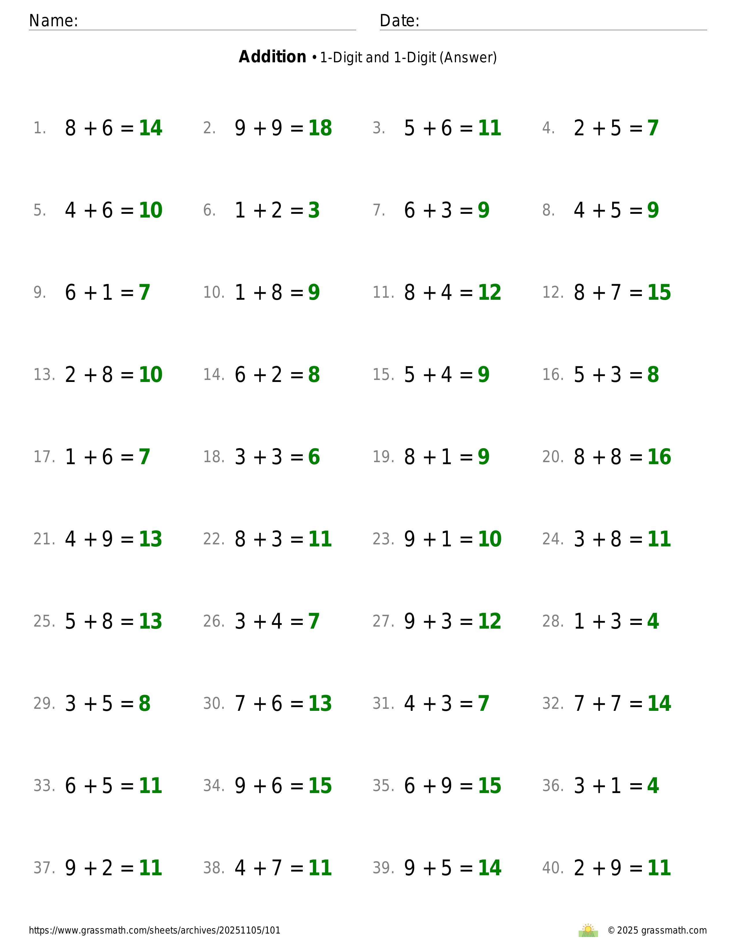 Addition 1-Digit and 1-Digit