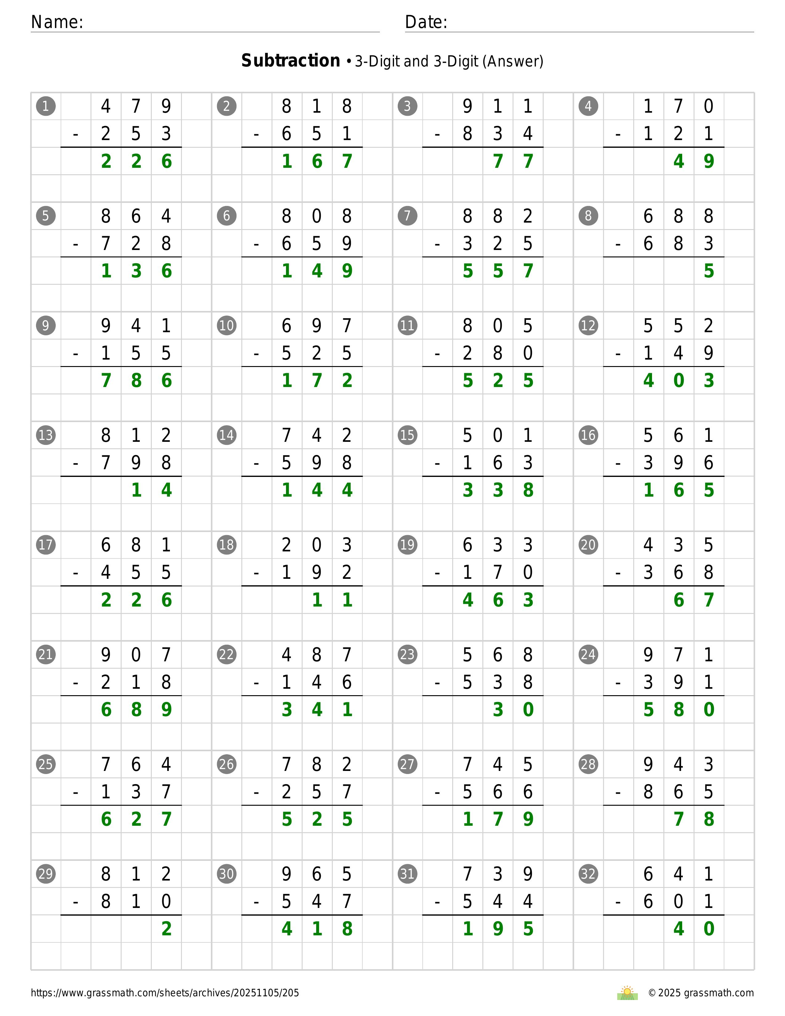 Subtraction 3-Digit and 3-Digit
