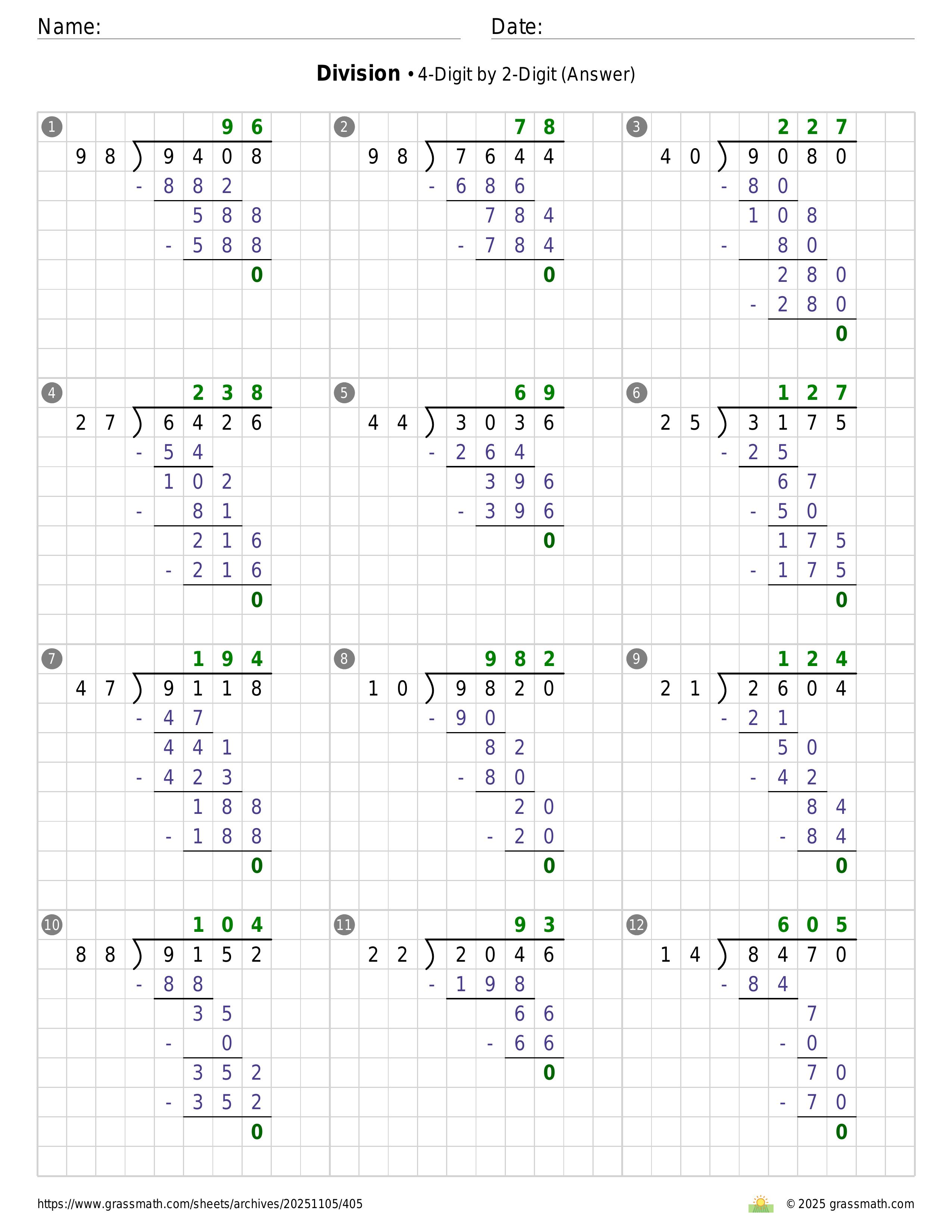 Division 4-Digit by 2-Digit