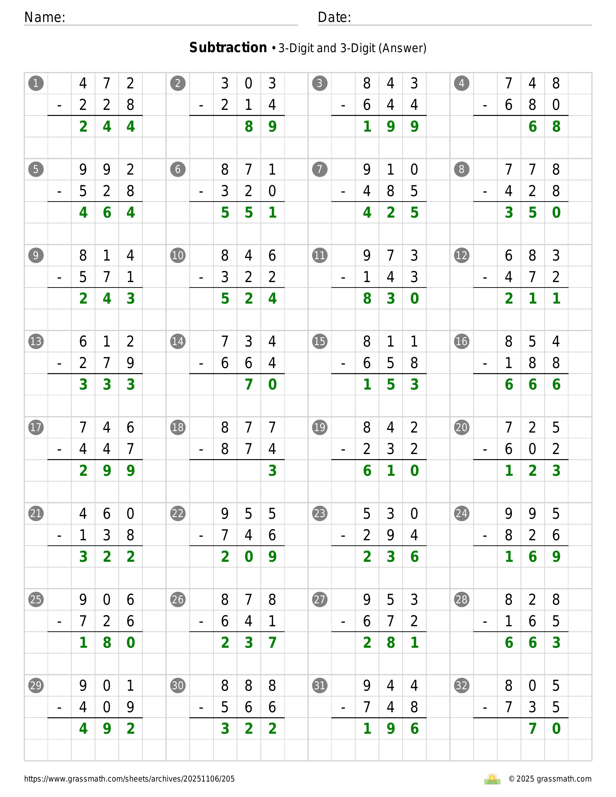 Subtraction 3-Digit and 3-Digit
